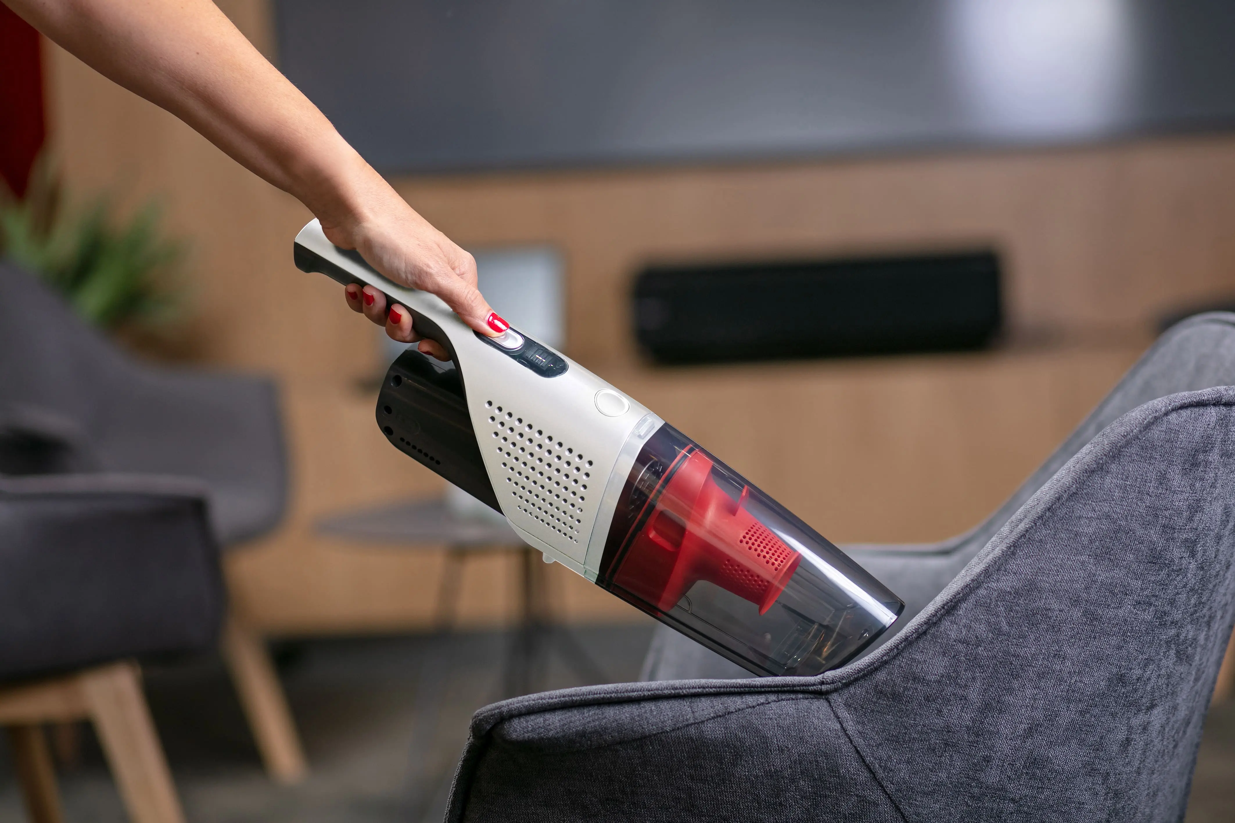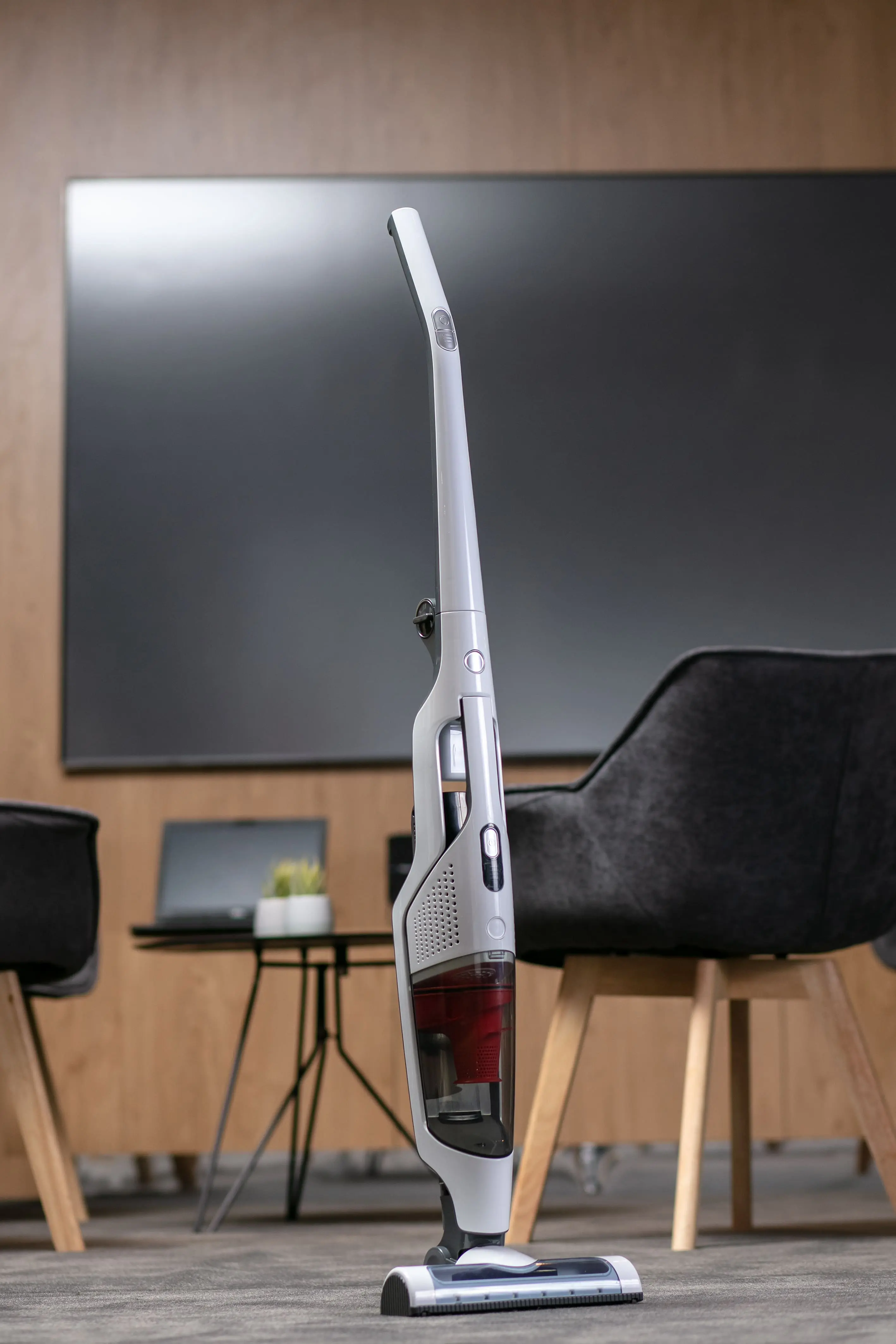 Це автономний пилосос. Не потрібно його паркувати на зарядній станції. Зручна складна ручка дозволяє прибрати пилосос на зберігання в невелику шафку, а від'єднаний акумулятор можна заряджати будь-де. Завдяки потужній літієвої батареї 20000 мАг ви не відчуєте втрату потужності під час прибирання. Навіть при повному заряді пилосос працює з максимальною потужністю. Одним рухом відкрийте засувку, від'єднайте контейнер і витрусіть пил. Контейнер встановлюється на місце за лічені миті.