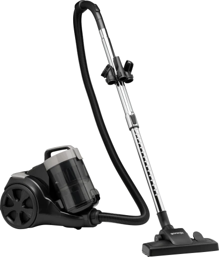 Мережевий пилосос для сухого прибирання з потужністю всмоктування 140 Вт і споживаною потужністю 850 Вт, оснащений контейнером для пилу об’ємом 3,3 л та фільтром тонкого очищення. Має телескопічну металеву трубку, насадки для підлоги/килима, щілинну, пилову та для м’яких меблів. Потужність регулюється на корпусі, передбачені прогумовані колеса, можливість вертикального або горизонтального зберігання, функція автозмотування шнура. Рівень шуму становить 79 дБ, радіус прибирання — 7 м, колір — чорний.