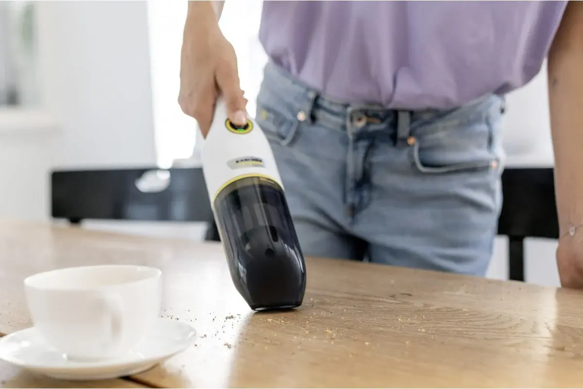 Ручний пилосос CVH 2-4 завжди готовий до роботи та дає змогу швидко розв'язувати безліч завдань прибирання на кухні, у вітальні, спальні або салоні автомобіля. Він легко збирає пил і дрібне сміття - волосся, крихти їжі тощо. За допомогою щілинної насадки "2 в 1" ним можна очищати як чутливі до механічних впливів поверхні, так і важкодоступні місця. Легкий і компактний апарат дуже зручний у використанні та гарантує гігієнічне прибирання. 2-ступінчаста система фільтрації забезпечує чистоту повітря, що виходить назовні