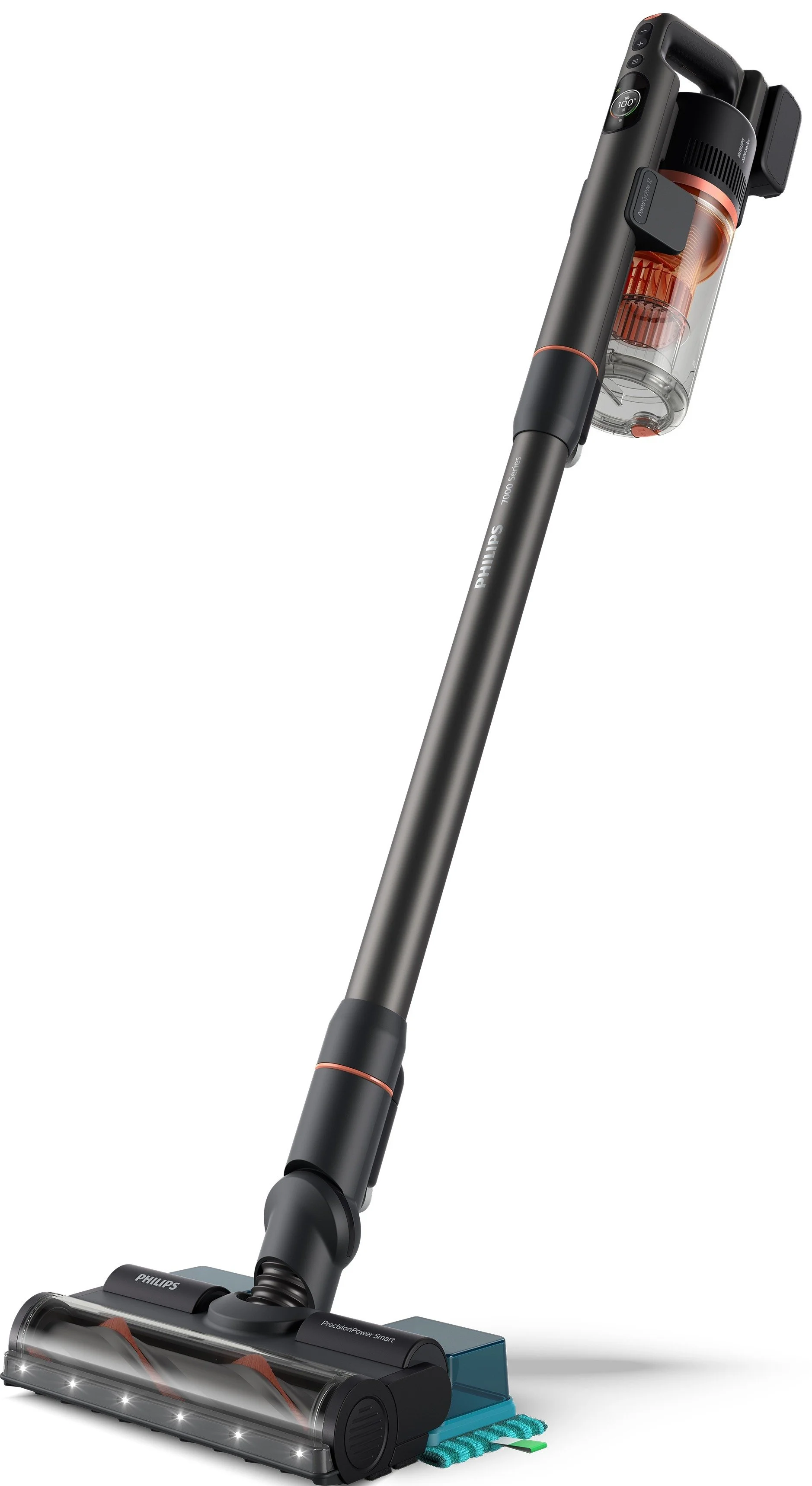 Бездротовий пилосос Philips серії 7000 - оцініть максимально ефективний збір пилу та економію енергії завдяки PowerCyclone 12. Прибирання всього будинку без підзарядки акумулятора. Зручний знімний модуль Aqua видаляє до 99 % бактерій