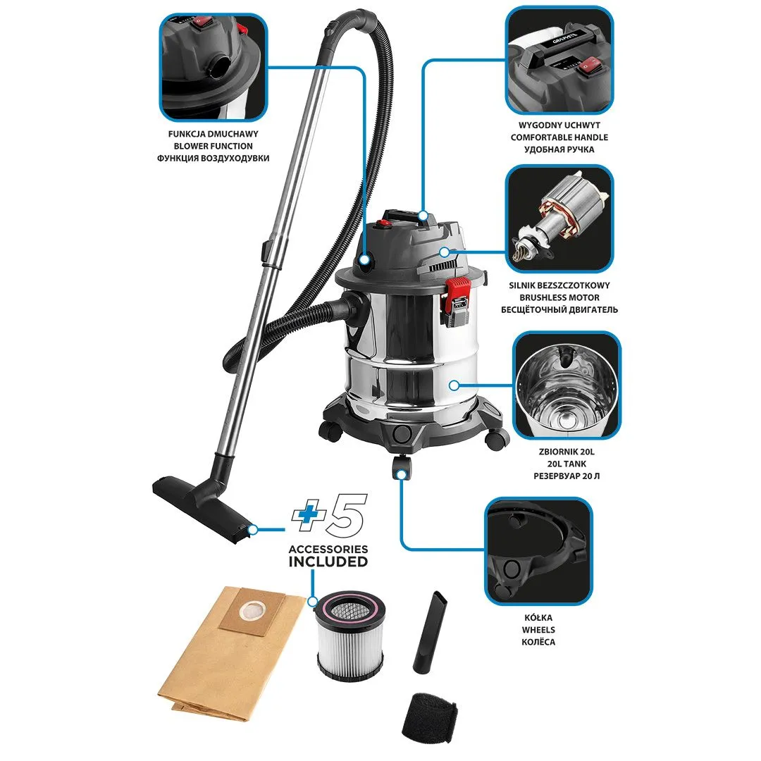 Пилосос професійний акумуляторний GRAPHITE Energy+ 18В, контейнер 20л, 4,03кг, без АКБ та ЗП