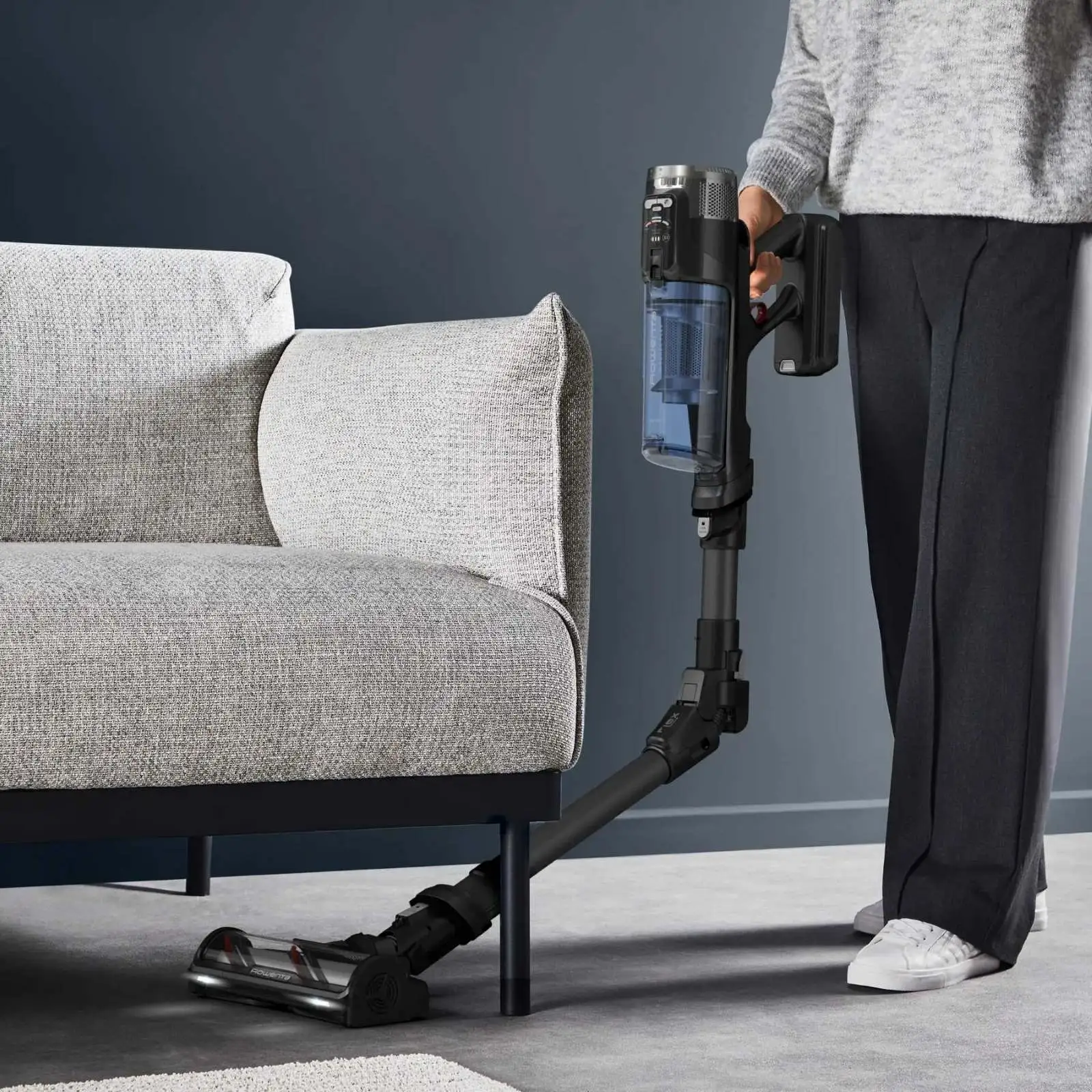 Акумуляторний пилосос Rowenta X-Force Flex 12.60 Neo забезпечує високу ефективність всмоктування, потужністю 150 Вт. Обладнаний новітньою щіткою, а також автоматичним регулюванням потужності всмоктування для ефективного очищення всіх підлог, особливо килимів. Скористайтеся активною миючою насадкою Aerospin, яка скорочує час прибирання вдвічі! Вона пропонує рішення 2-в-1: активне миття з обертовими швабрами для видалення стійких плям та потужне всмоктування. Технологія Flex для прибирання під низькими меблями, з LED-підсвіткою для кращої видимості. Ви не пропустите жодної пилинки.