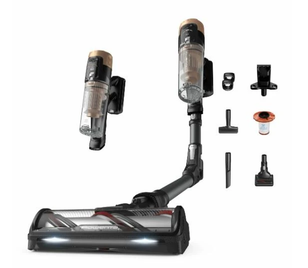 Акумуляторний пилосос Rowenta X-Force Flex 14.80 Auto Animal RH9B74WO — це інноваційний бездротовий пристрій для сухого прибирання, що поєднує потужність всмоктування 240 Вт, до 90 хвилин автономної роботи та технологію Flex для легкого прибирання під меблями. У комплекті — турбощітка та міні турбощітка з LED-підсвіткою, насадки для щілин і меблів. Пилосос оснащений індикатором заряду та очищення, а система фільтрації HEF забезпечує захоплення до 99,98% частинок пилу.