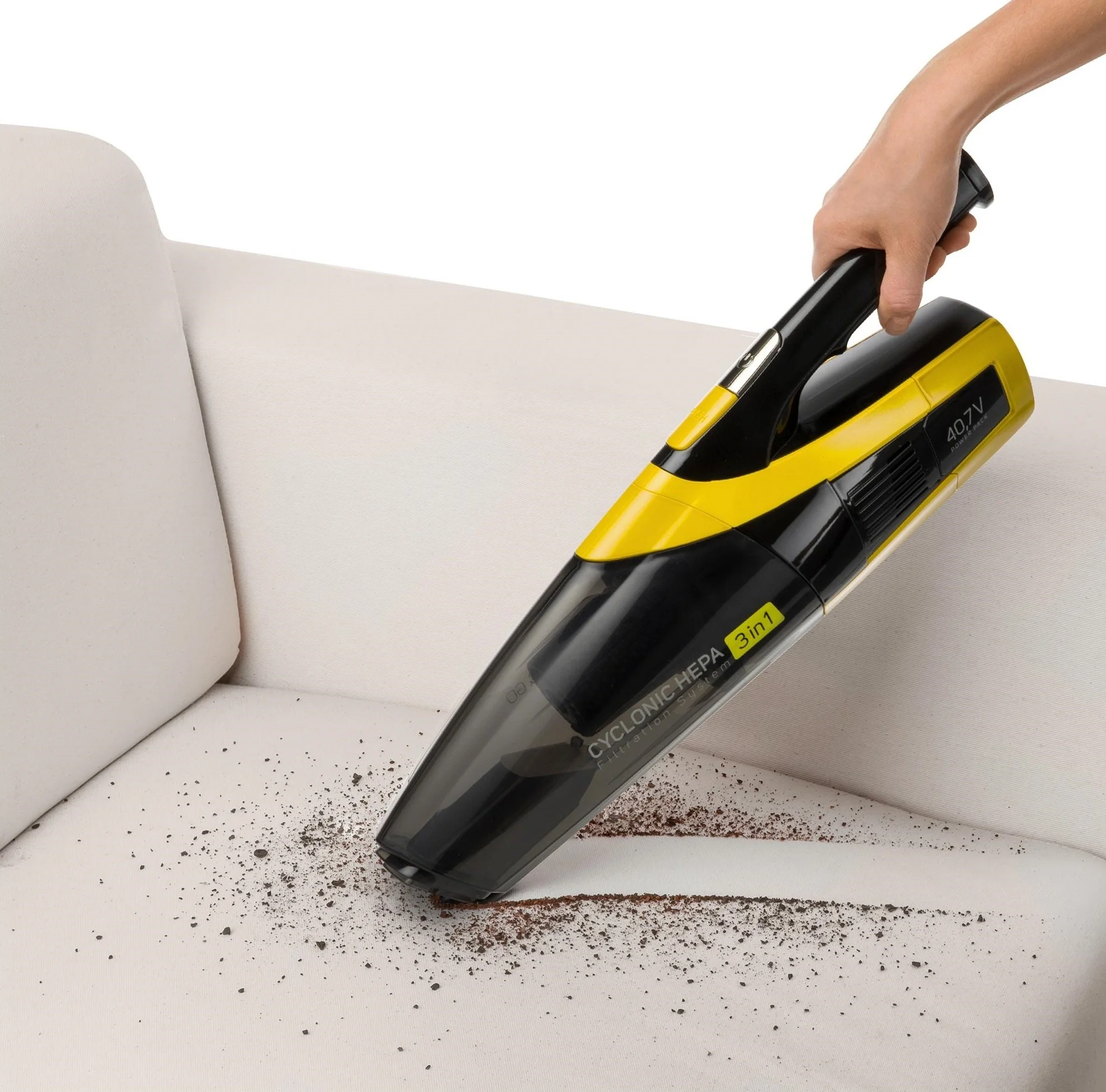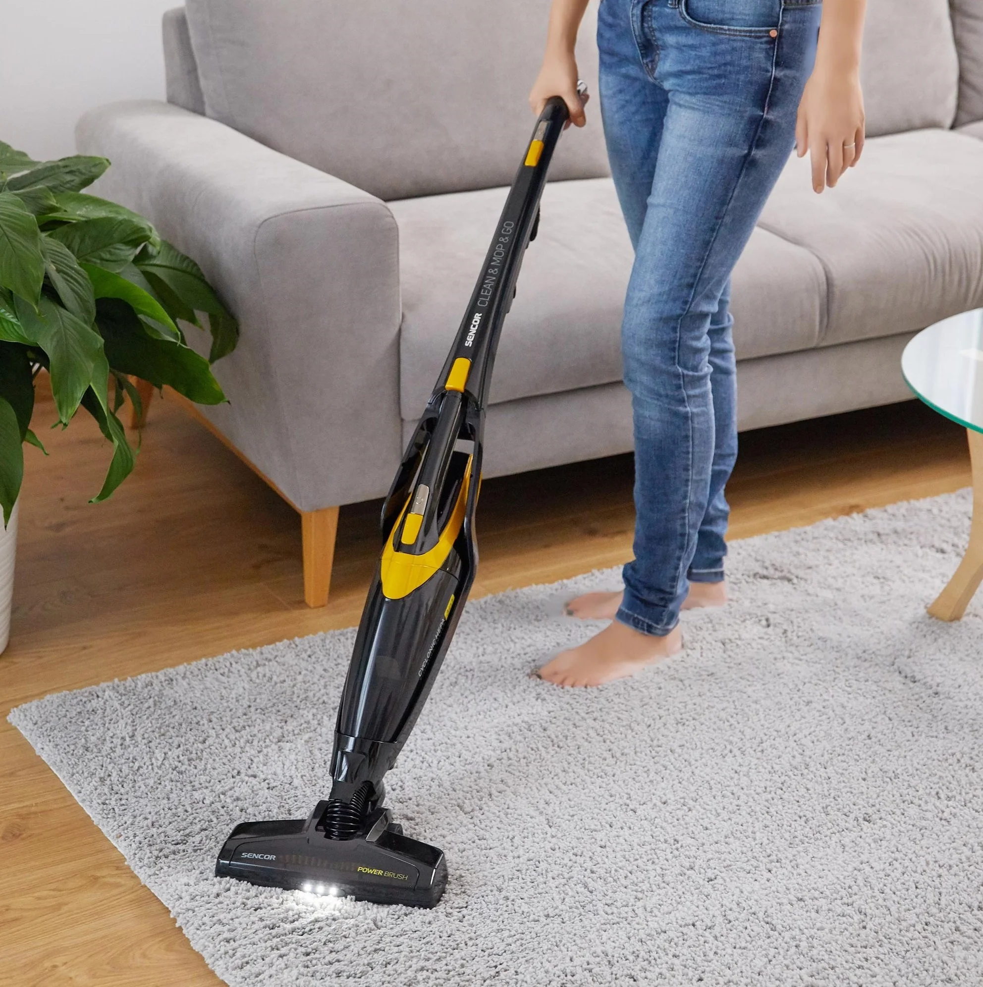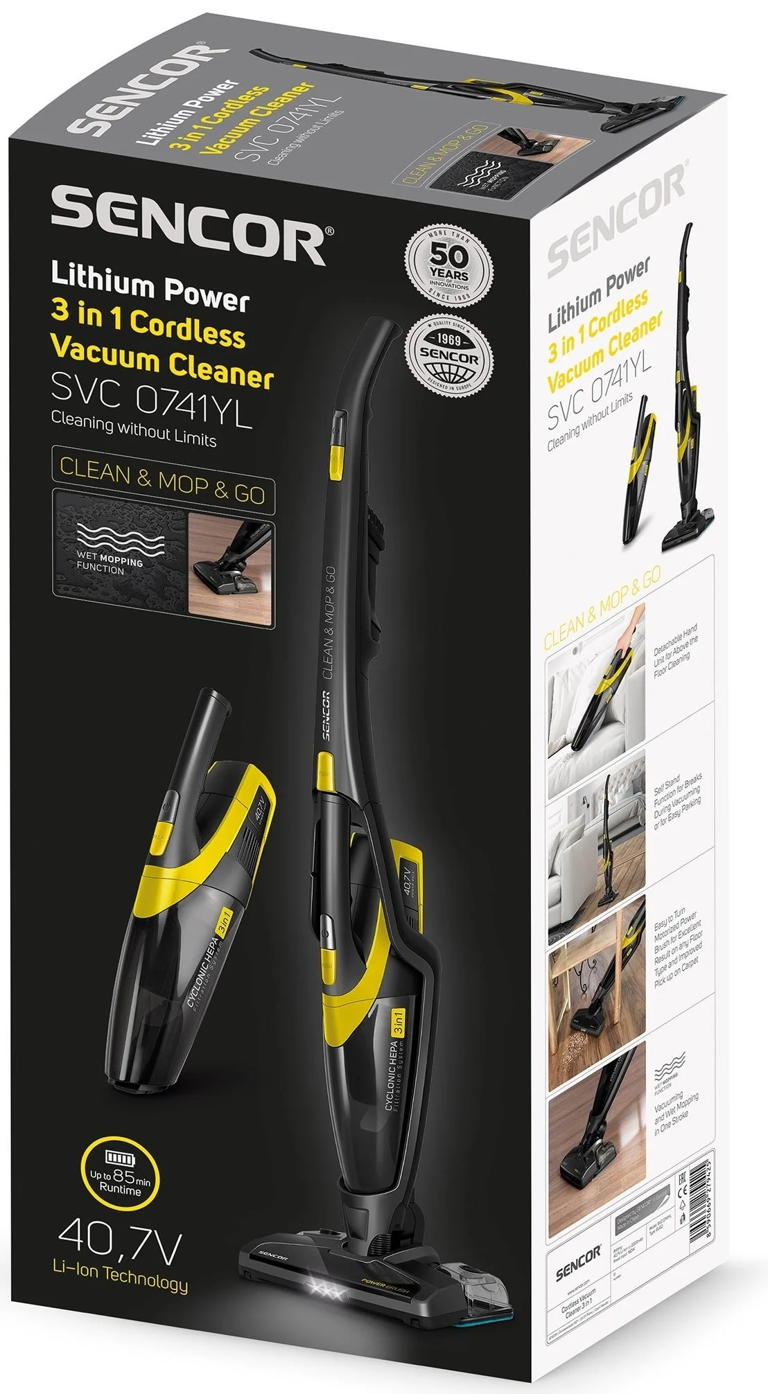 Залиш весь безлад на пилосос SVC 0741YL-EUE3 від Sencor, і в мене є високоефективна літій-іонна батарея 40,7 В, з якою я можу працювати протягом чудових 85 хвилин. Насолоджуйтеся повною свободою під час прибирання! Бездротова робота дуже зручна, і, оскільки я користуюся ручним пилососом, я також забезпечую зручне поводження, незалежно від того, яку підлогу ви пилососите, навіть під меблями. Спробуйте мене! Я потужний, легкий, тихий, стійкий, багатофункціональний і простий у використанні завдяки поворотній насадці на 180°.