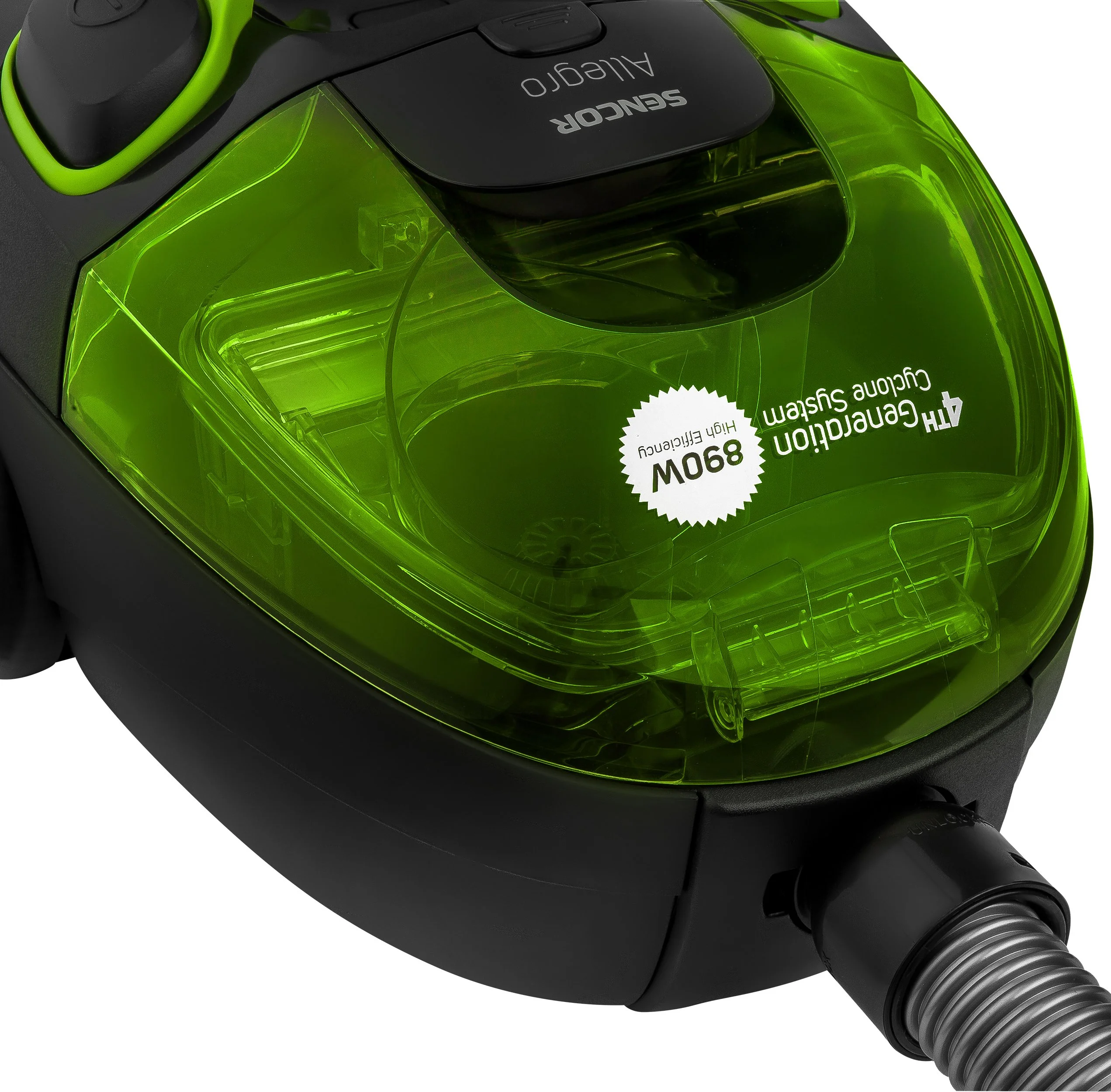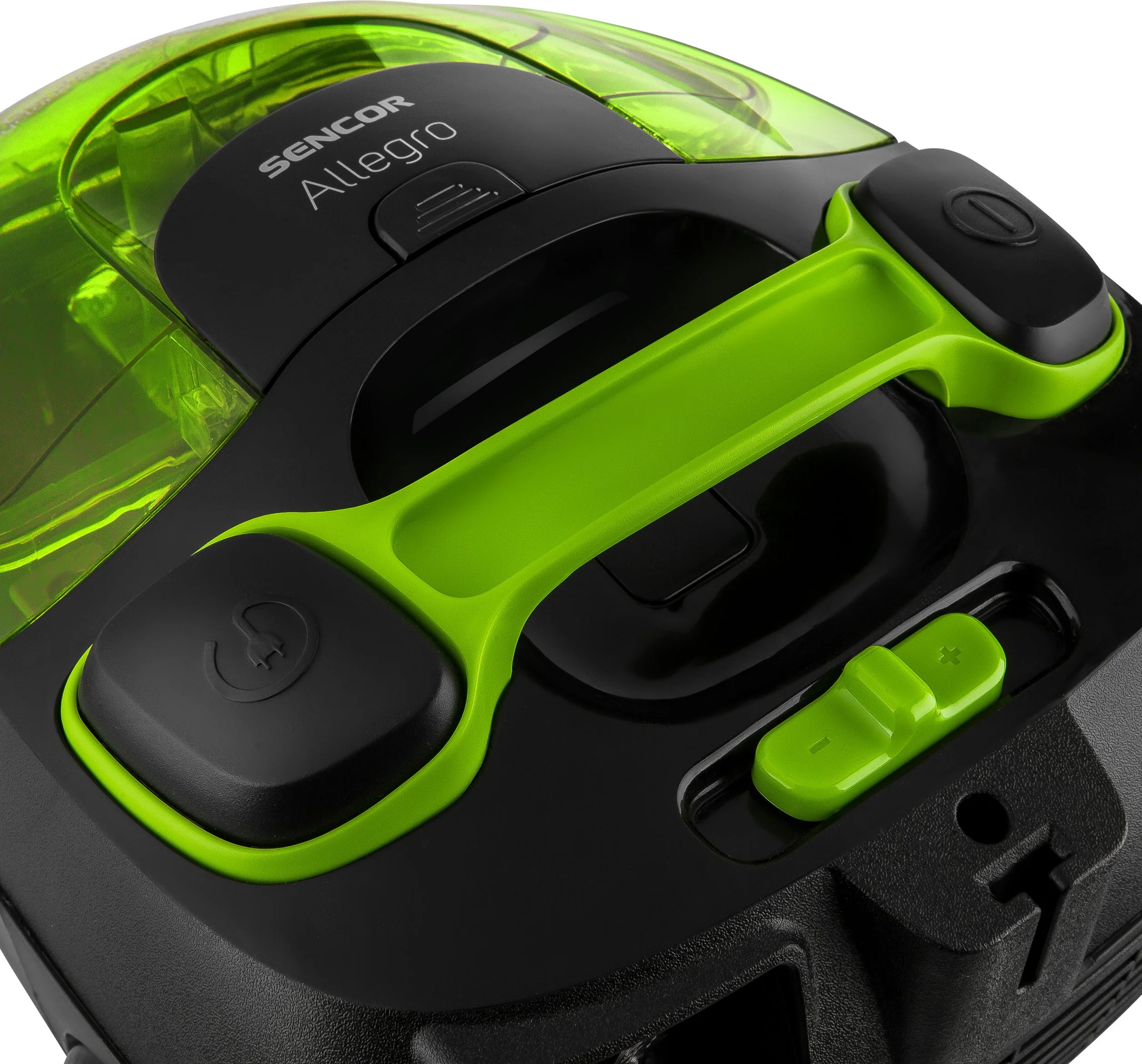 Пилосос Sencor контейнерний Allegro, 890Вт, контейнер -1,5л, НЕРА, чорно-зелений