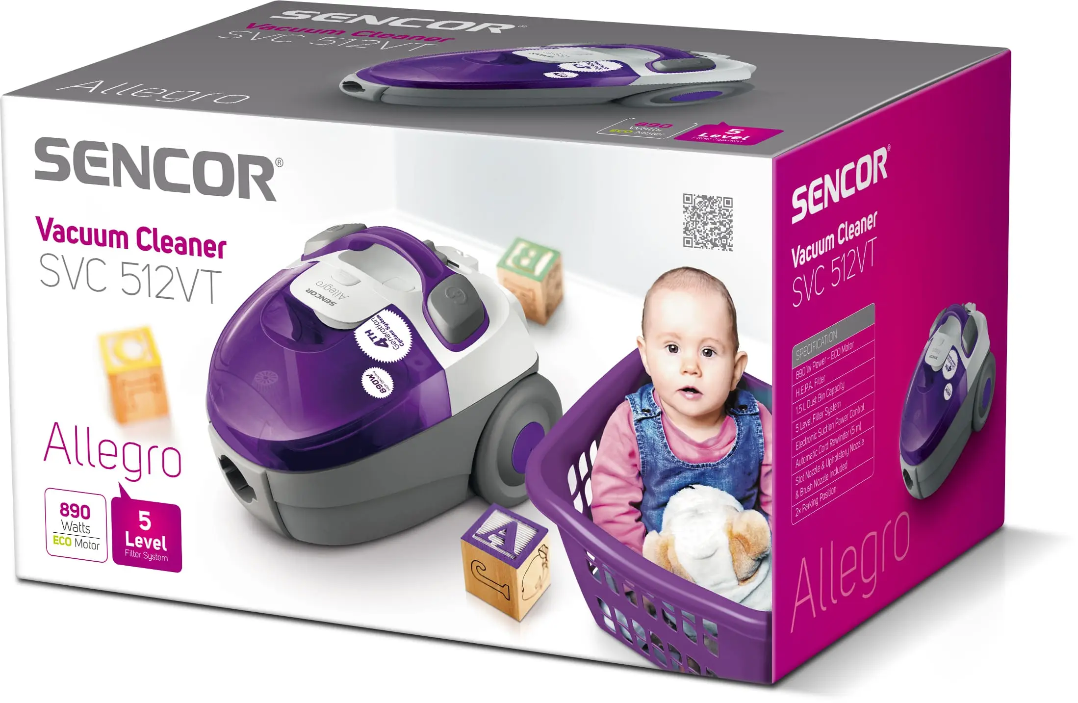 Пилосос Sencor контейнерний Allegro, 890Вт, контейнер -1,5л, НЕРА, фіолетово-сірий