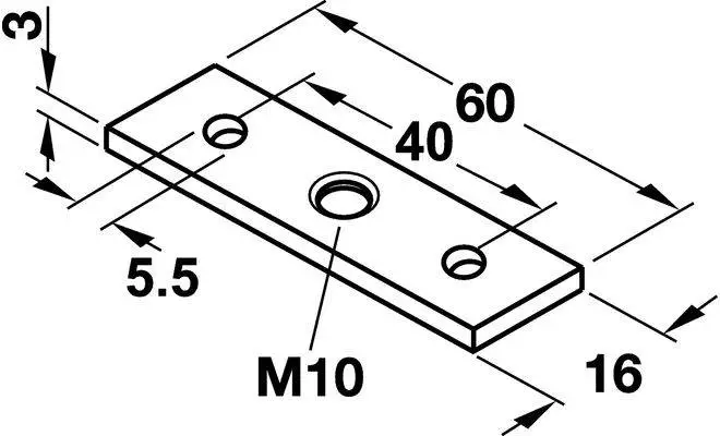Планка монтажная М10 16 х 60 мм, сталь, оцинкованная
