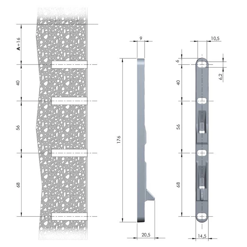 Планка WP от Italiana Ferramenta специально разработана для скрытого подвеса LIKU и применяется в конструкциях без задней стенки. Благодаря оптимальной форме, планка эффективно распределяет нагрузку, снижая риск вырывания саморезов при монтаже на стену.
