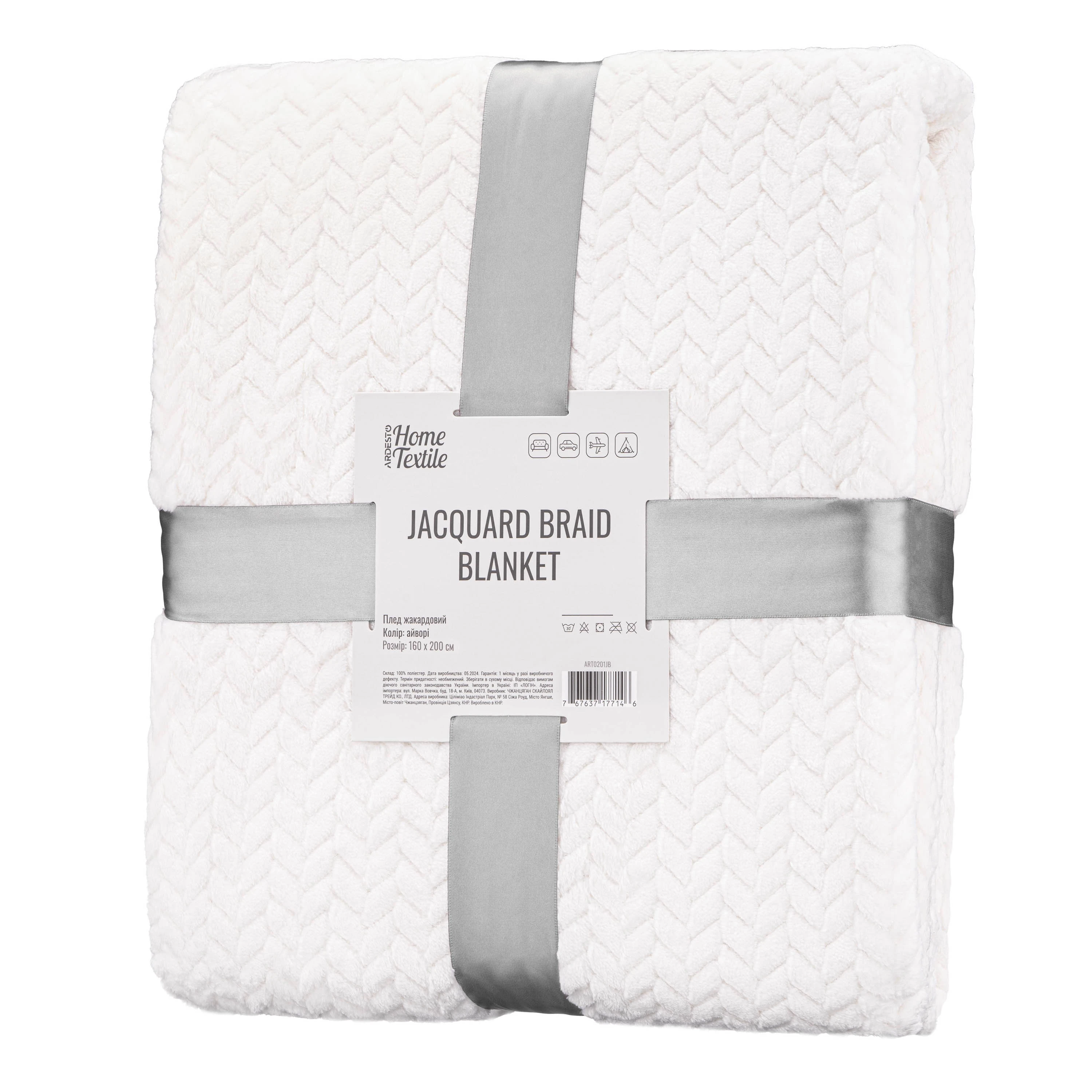 Плед Ardesto Jacquard Braid 160х200см, 100% поліестер, айворі
