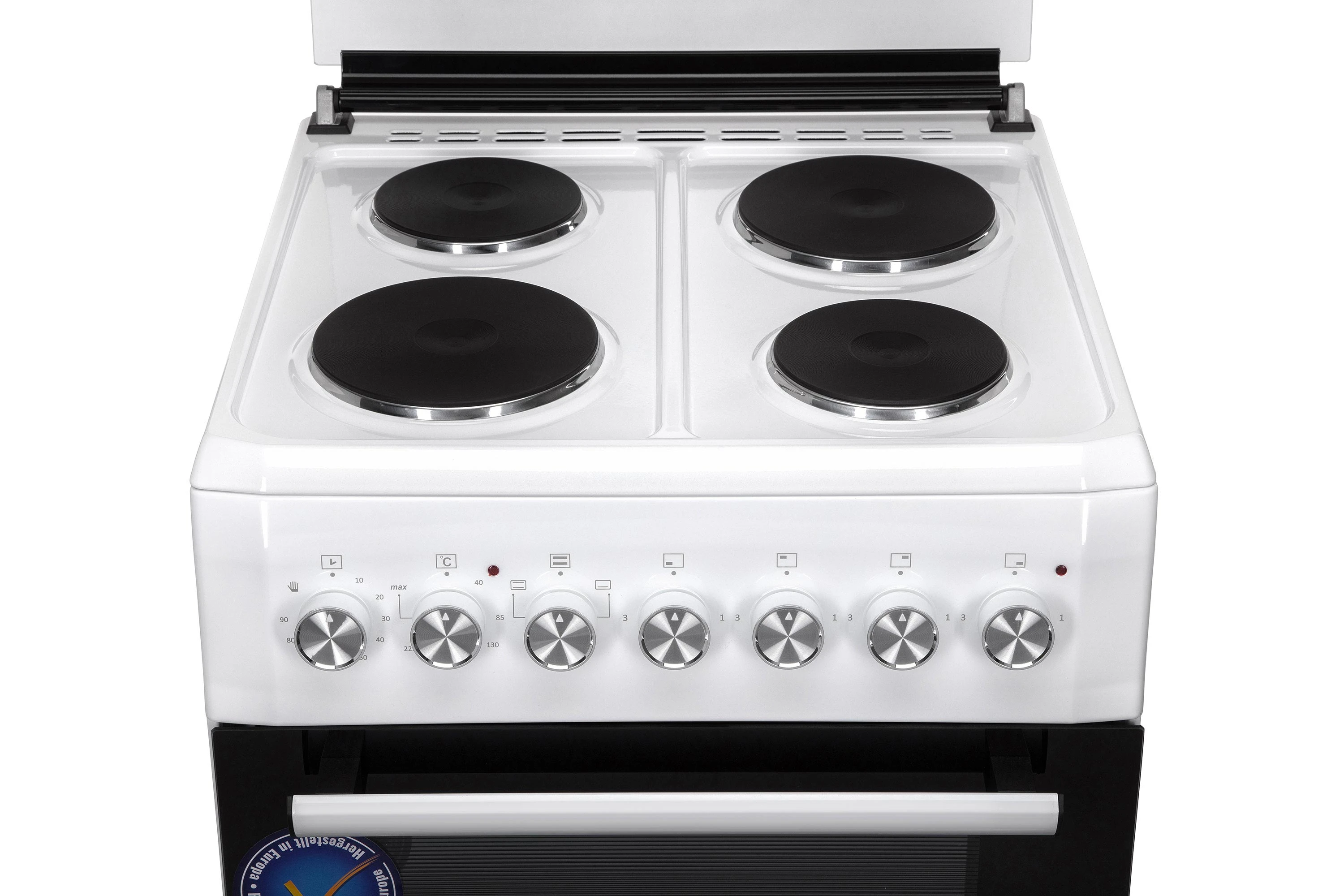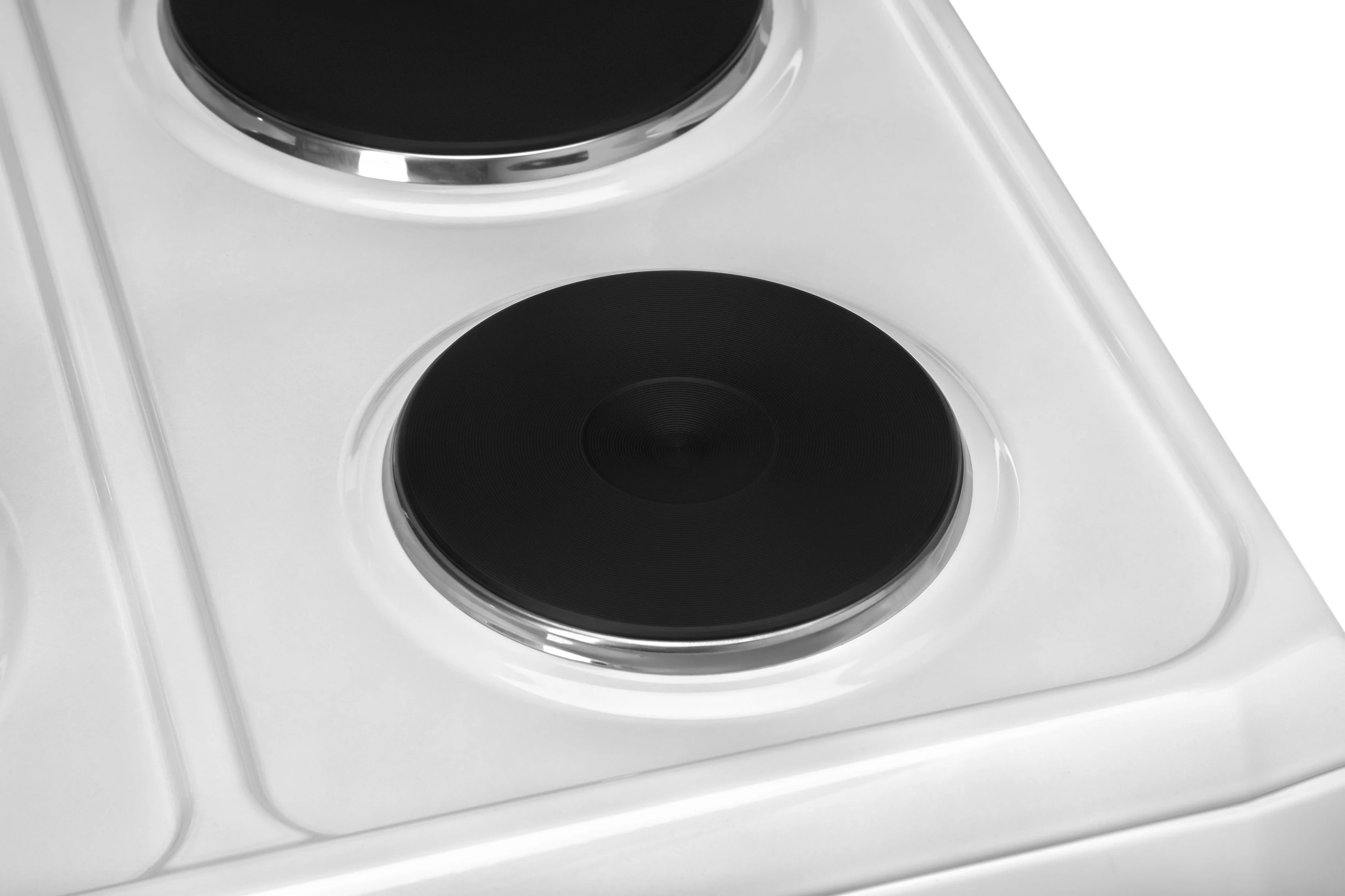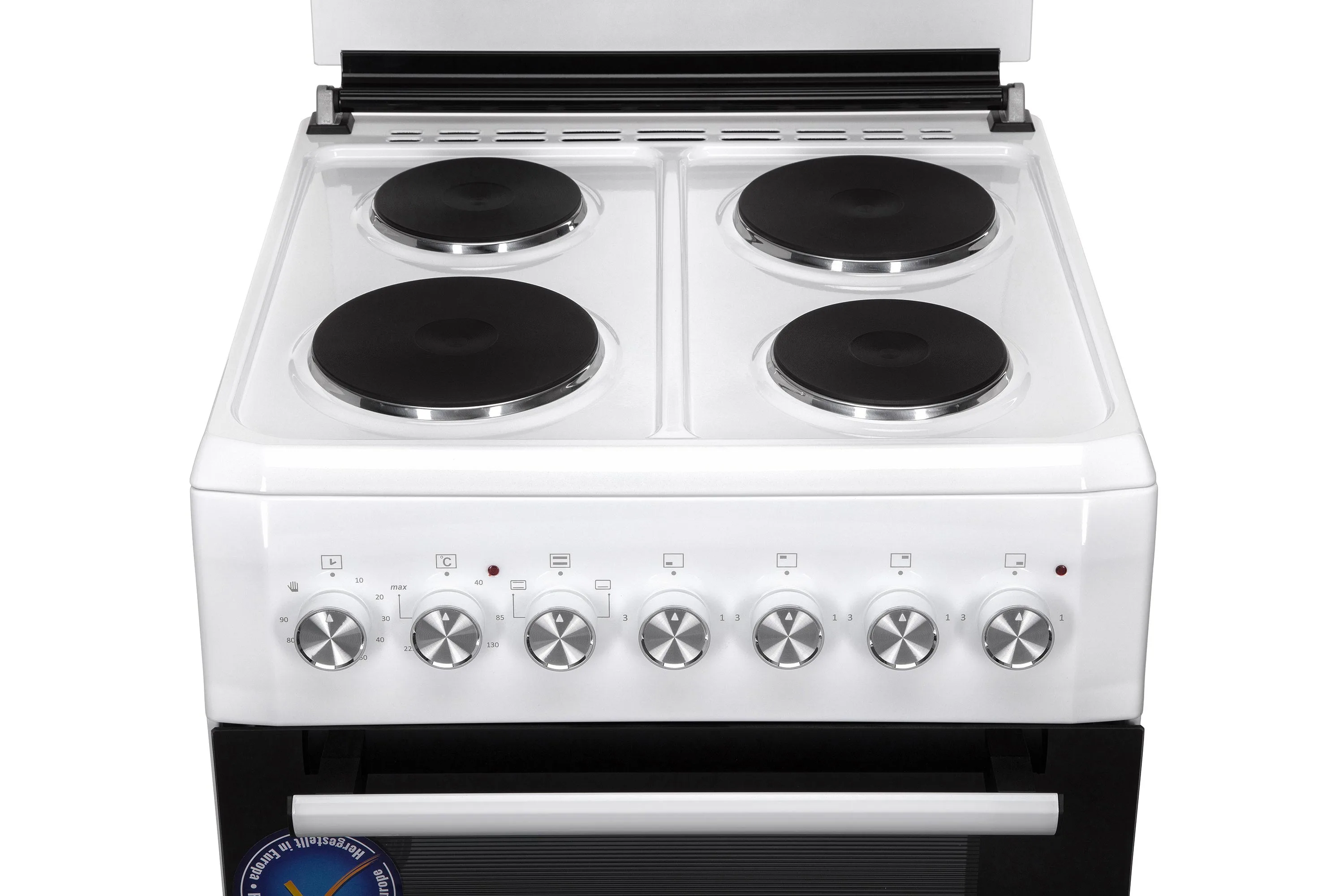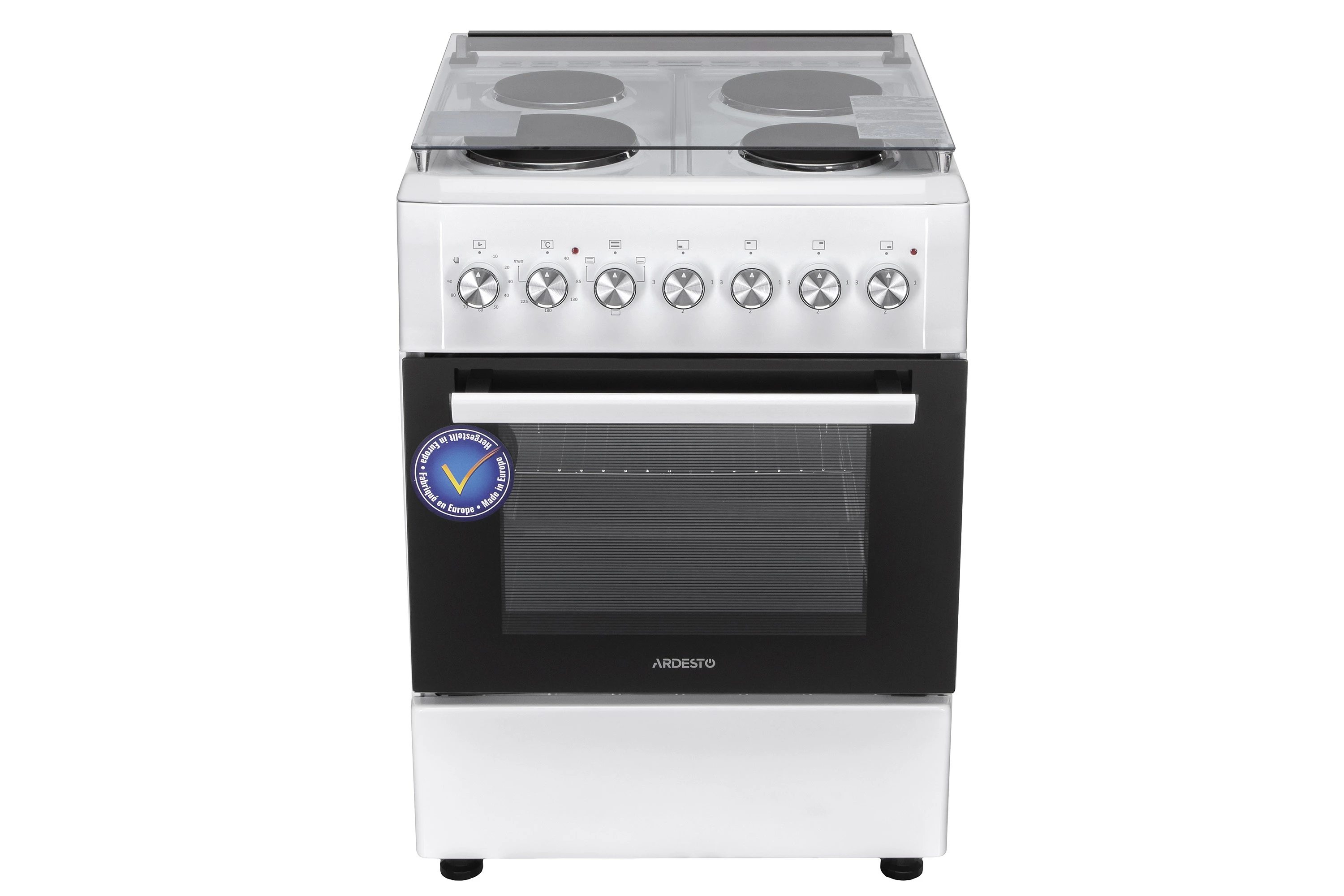 ARDESTO FSCF-E604W — это **электрическая плита классического формата 60×60 см**, идеально подходящая для ежедневного использования дома. Модель оснащена **4 электрическими конфорками** и **электрической духовкой объёмом 53 литра** с **внутренней подсветкой**, что позволяет удобно контролировать процесс приготовления. Белый корпус гармонично вписывается в любой интерьер кухни.