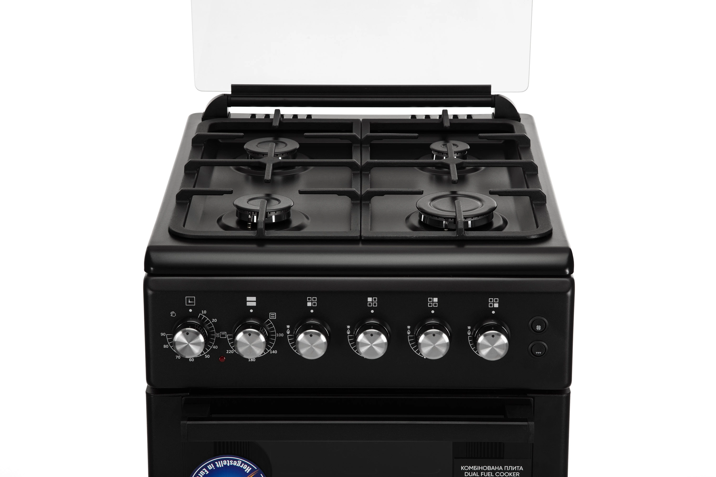 Дизайн комбінованої плити ARDESTO FSC-F5060PB класичний. Металевий корпус чорного кольору доповнюють зручні ручки з автозапалюванням. У плити чотири конфорки, вкриті чавунною решіткою та скляною кришкою. Додатково в комплекті є форсунки для скрапленого газу LPG. Клас захисту I. Наявна система газ-контролю. Духова шафа з підсвічуванням об’ємом 52 л. Cool Door – знімне внутрішнє скло (2 шт.). Функція конвекції – правильна циркуляція повітря. Наявна функція гриль. У комплекті постачання решітка та два дека – звичайне та глибоке. Відділення для сковорідок і форм для випікання – висувне та містке. Розмір (в × ш × г) 85 × 50 × 60 см. Вага 34 кг. У плиті ARDESTO FSC-F5060PB в тандемі працюють газова варильна поверхня та електрична духовка, розкриваючи свої найкращі якості.