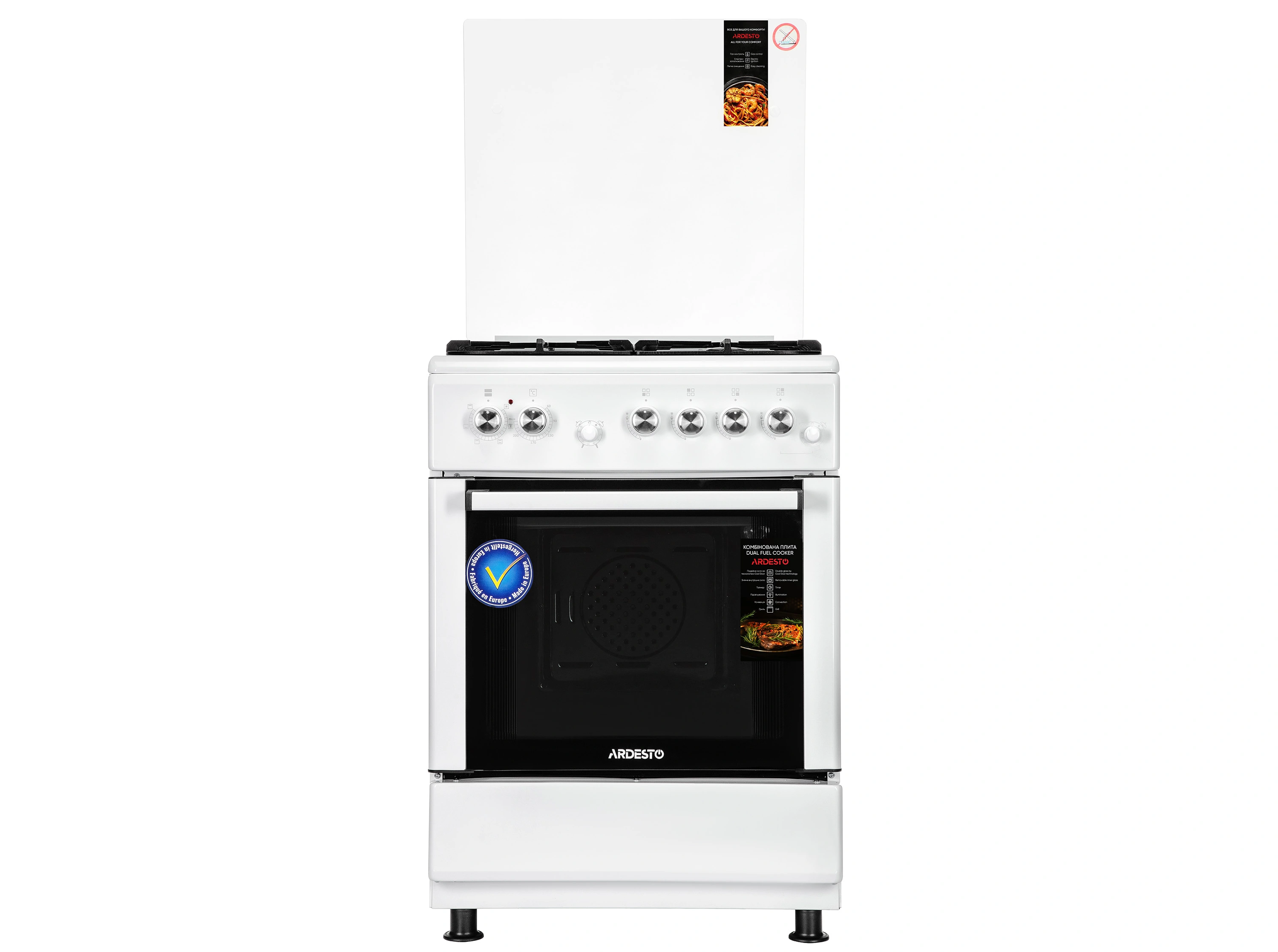 ARDESTO FSC-F6060PW — это универсальная **комбинированная плита**, которая сочетает **газовую варочную панель** и **электрическую духовку объёмом 64 литра** с функцией **конвекции**. Модель оснащена **чугунными решётками**, **подсветкой духовки** и комплектуется **форсунками для баллонного газа (LPG)**.