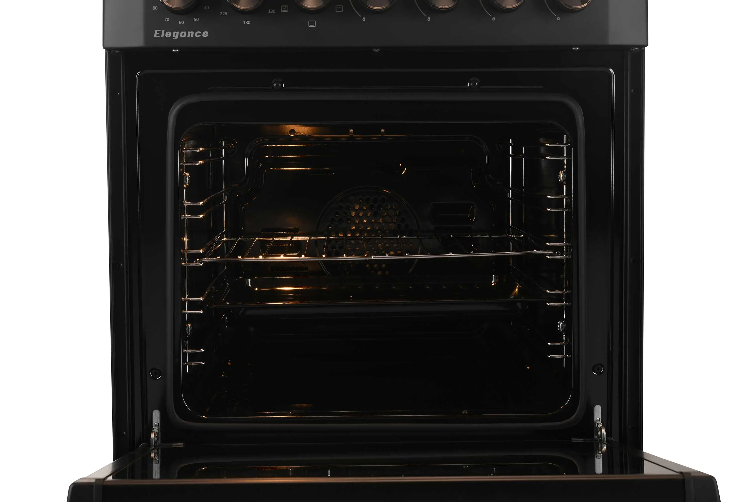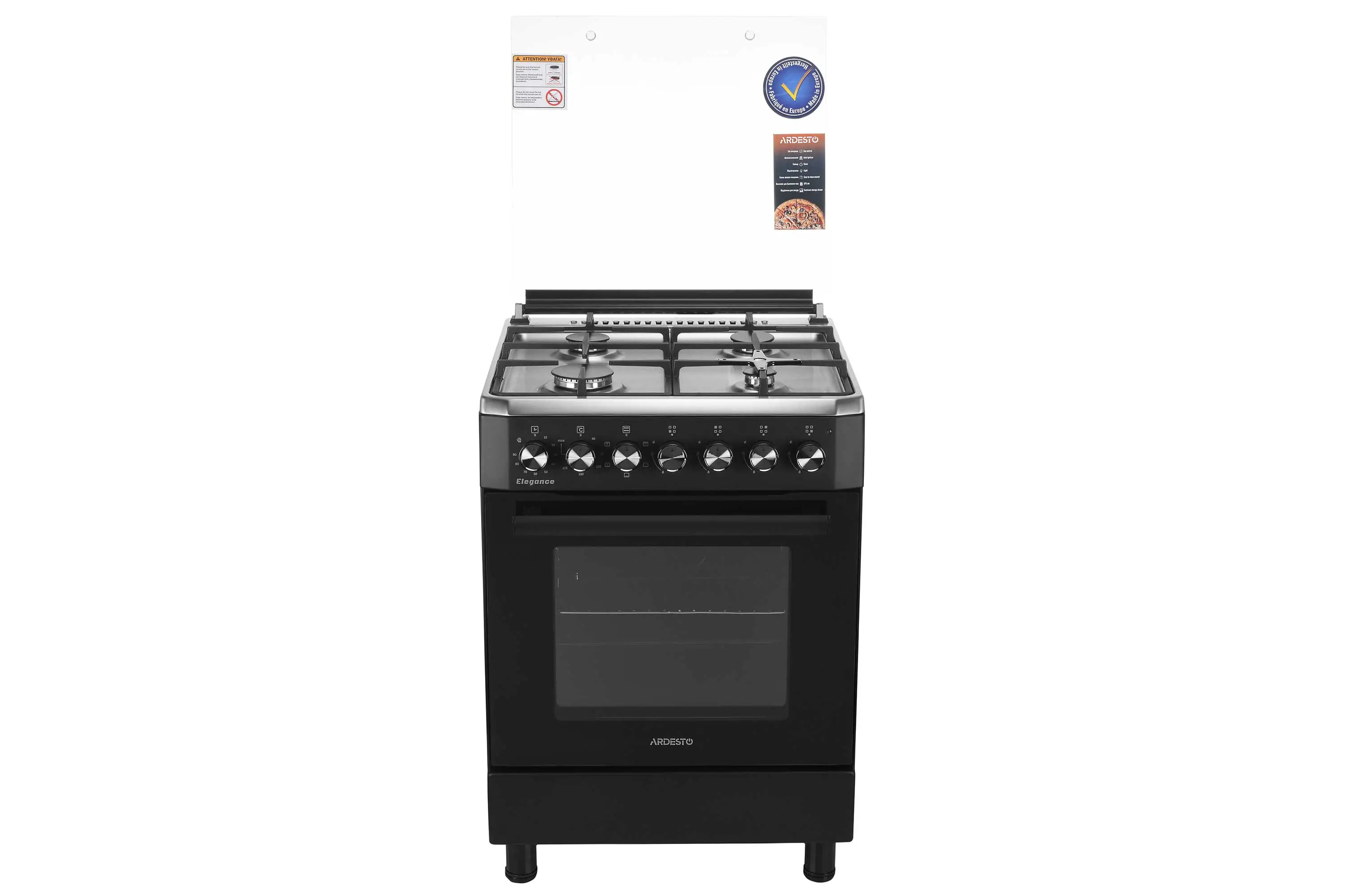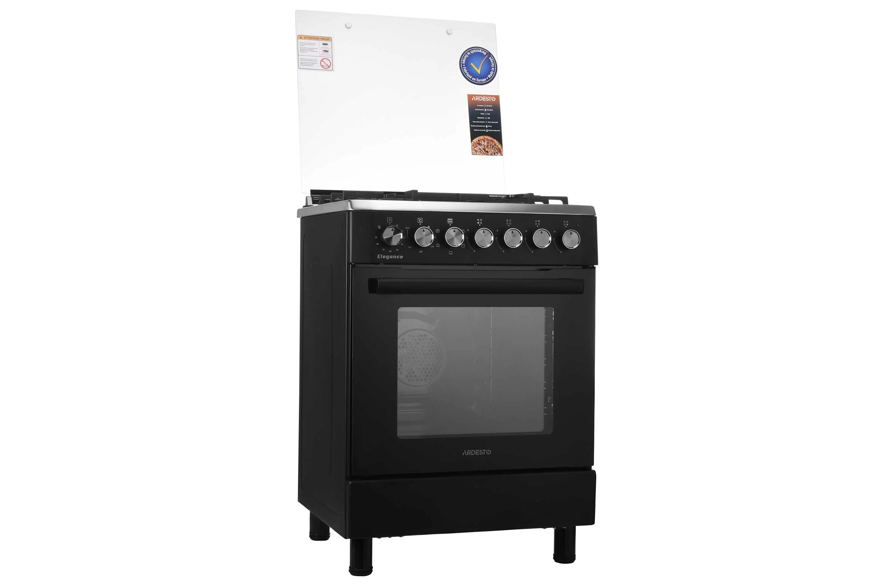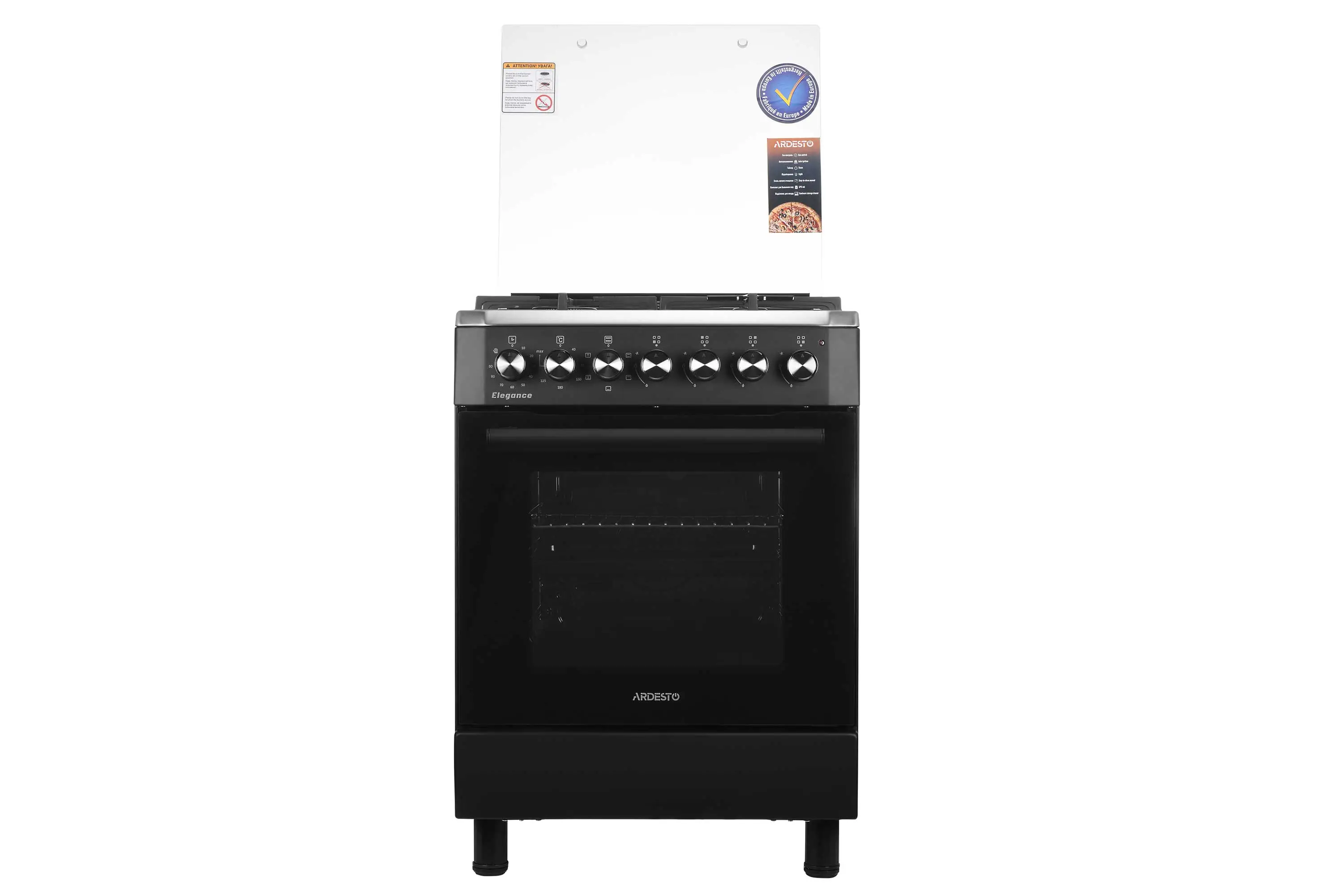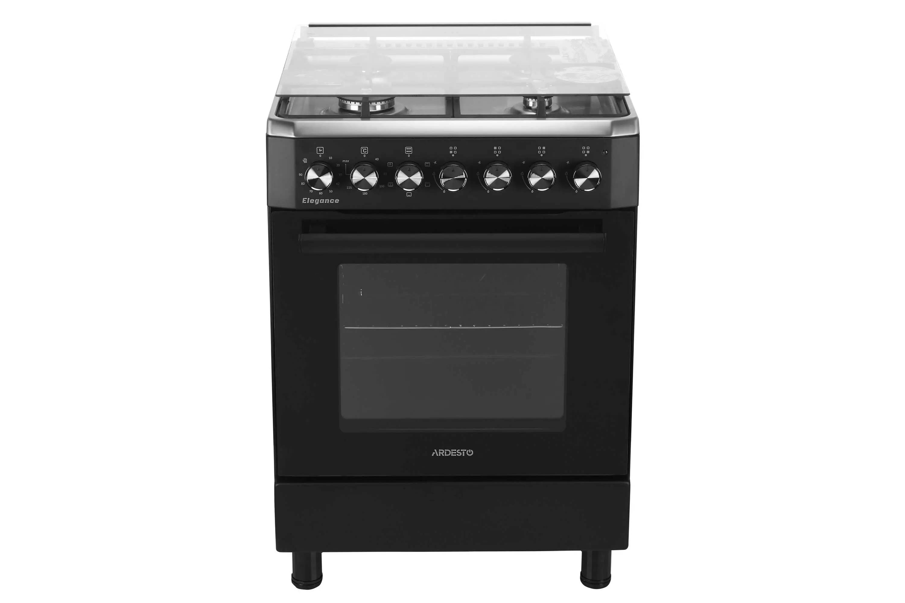 ARDESTO FSCF-C606BI — это элегантная комбинированная плита из серии Elegance, сочетающая газовую варочную поверхность и электрическую духовку на 66 литров. Модель оборудована **конвекцией**, **подсветкой** и адаптирована для **подключения к баллонному газу (LPG-форсунки в комплекте)**.