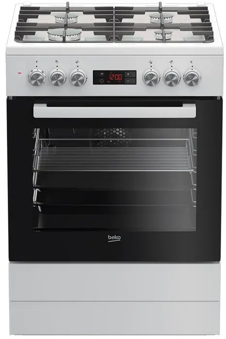 Плита Beko комбинированная, 65л, 60x60см, дисплей, конвекция, чугун, белый