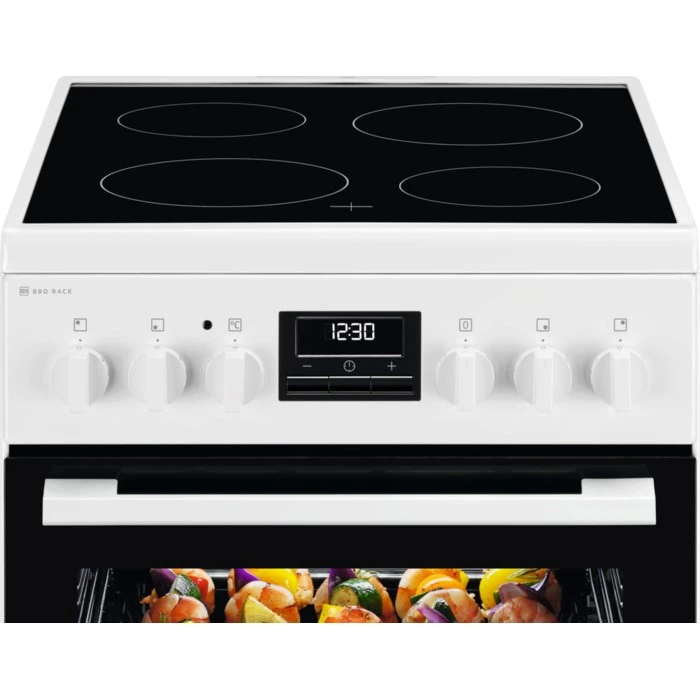 Electrolux LKR540267W — это современная **электрическая плита со стеклокерамической поверхностью**, объединяющая **многофункциональность, стиль и удобство**. Оснащена **4 конфорками Hi-Light**, **электрической духовкой объёмом 57 литров** с **конвекцией**, **дисплеем и таймером**. В комплект входит **мангальная решётка** для приготовления блюд с эффектом гриля. Белый корпус придаёт устройству классический вид.