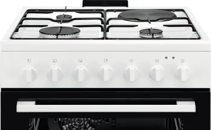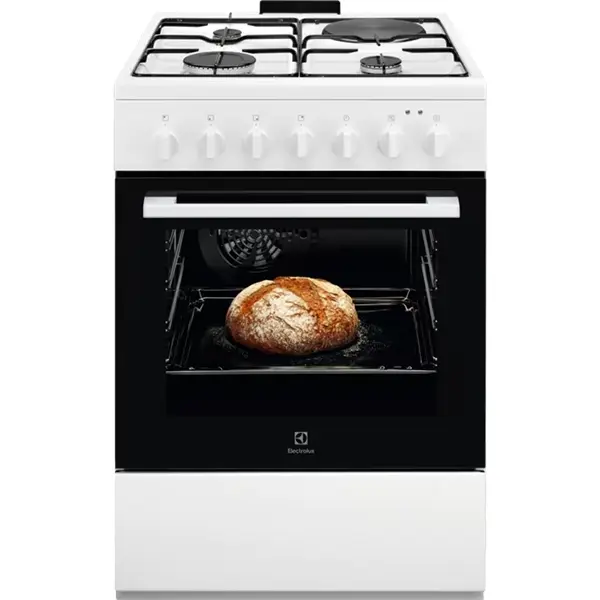 Плита Electrolux комбінована 3 газ + 1 електро, 57л, 60x60см, конвекція, білий