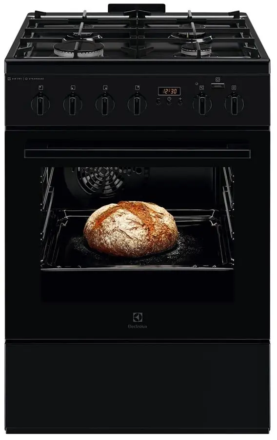 Плита Electrolux комбинированная, 58л, 60x60см, дисплей, конвекция, чугун, пар, черный
