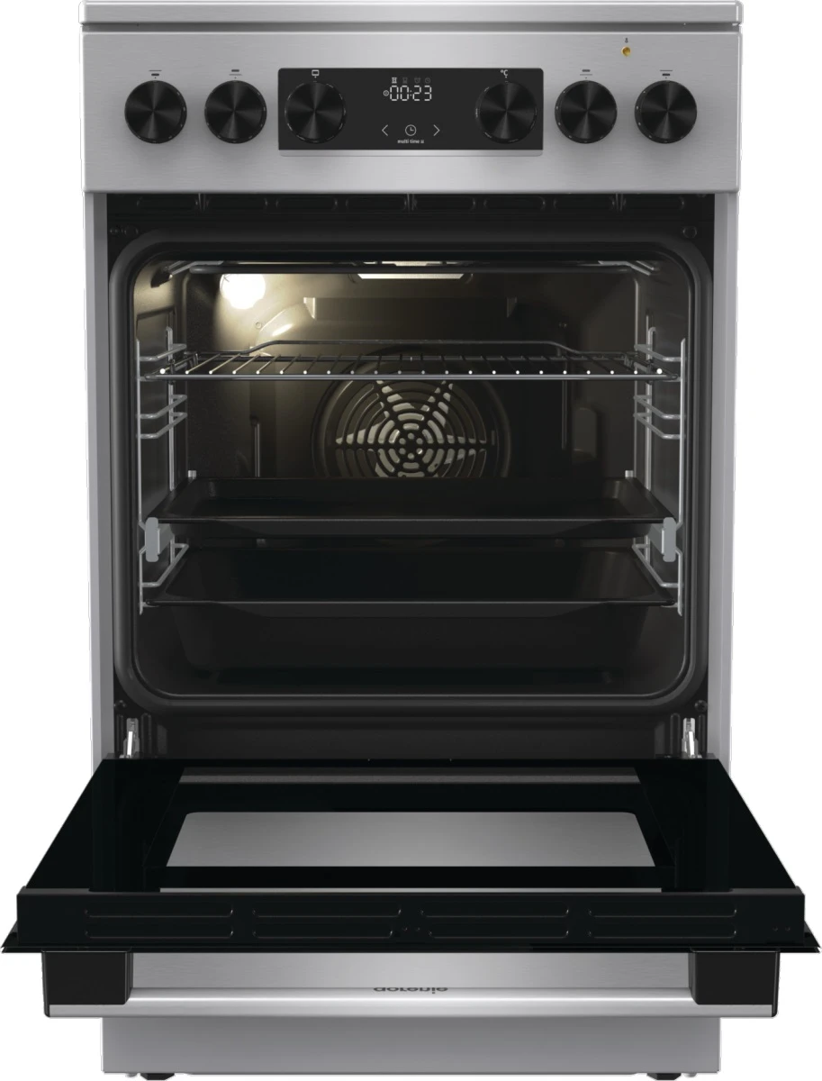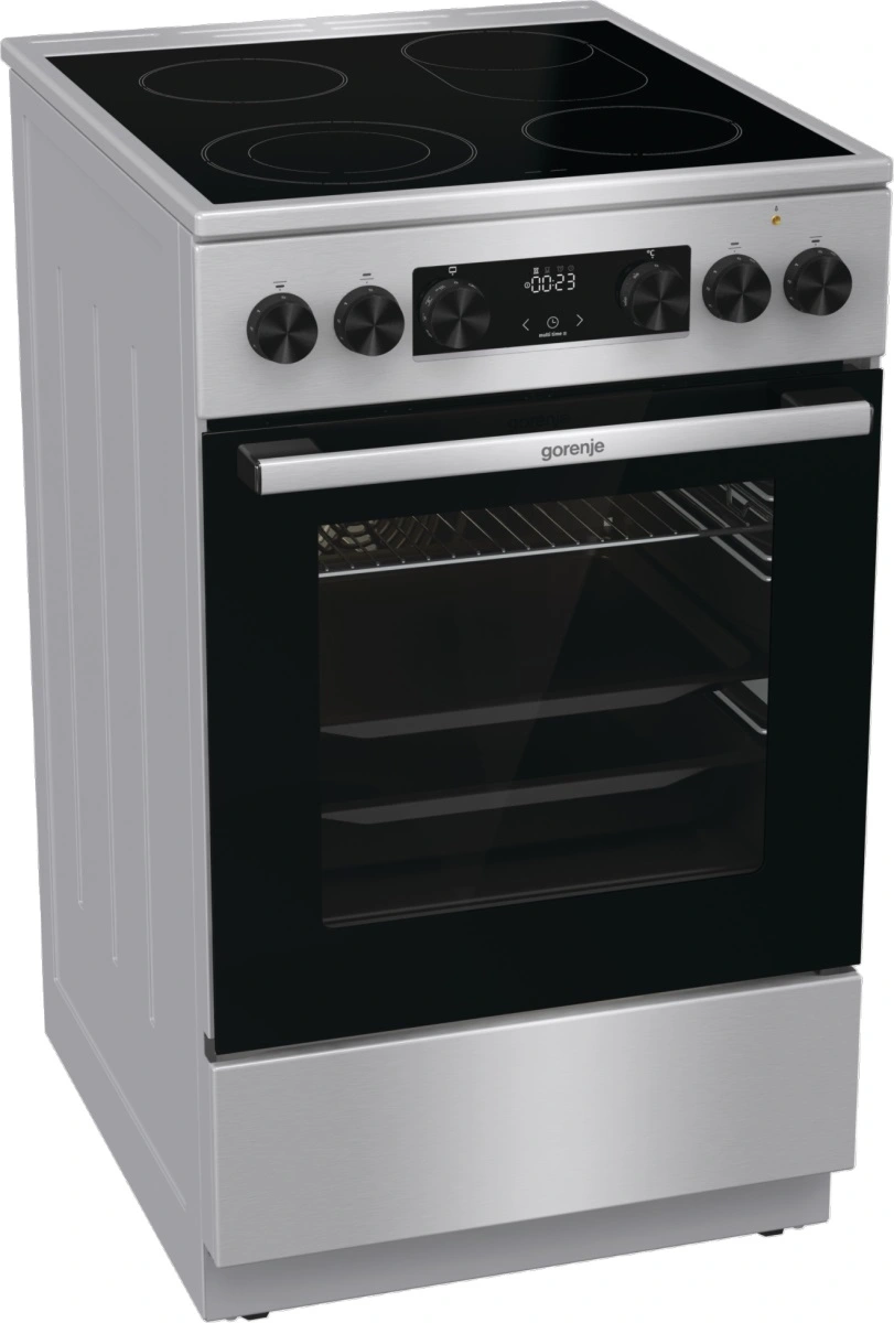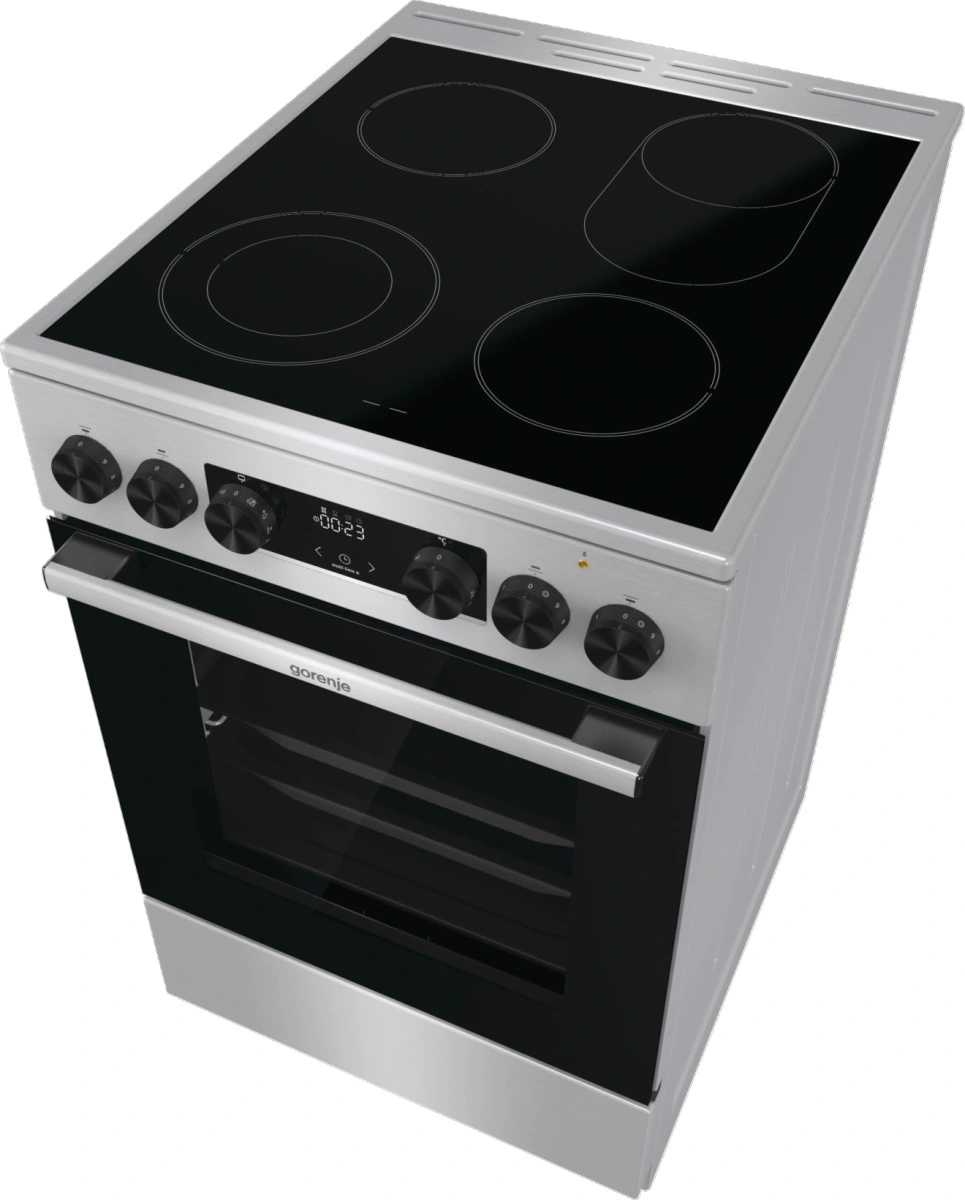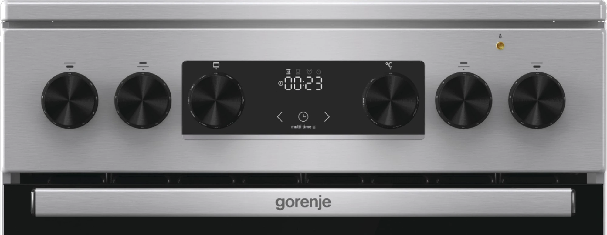Gorenje GECS5C70XA — это современная **электрическая плита с поверхностью из стеклокерамики**, сочетающая в себе **премиальный дизайн, простоту в уходе и функциональность**. Оснащена **электрической духовкой объёмом 70 литров**, **дисплеем**, **электронным программатором** и **четырьмя Hi-Light конфорками**. Корпус из **нержавеющей стали** подчёркивает элегантность и надёжность прибора.