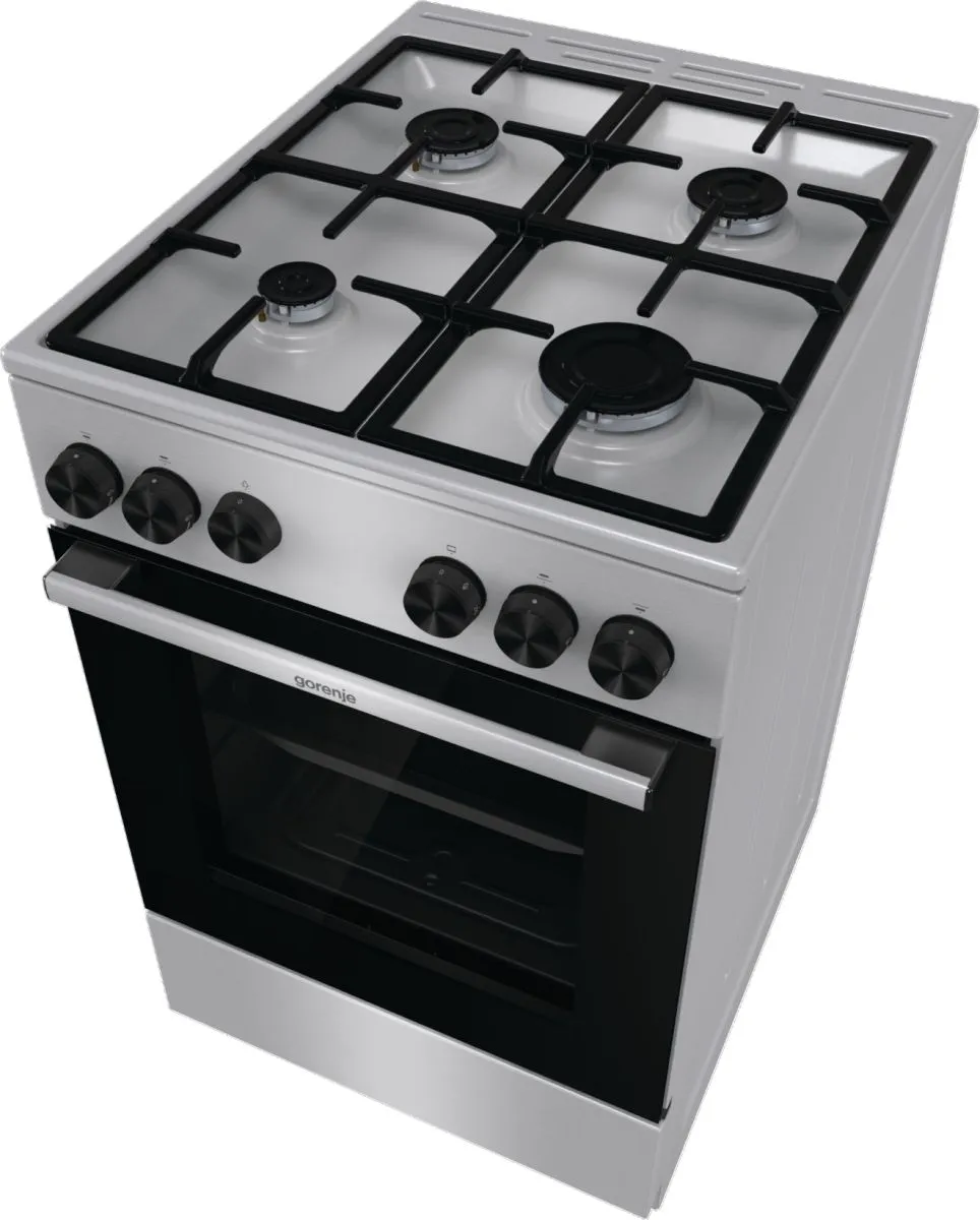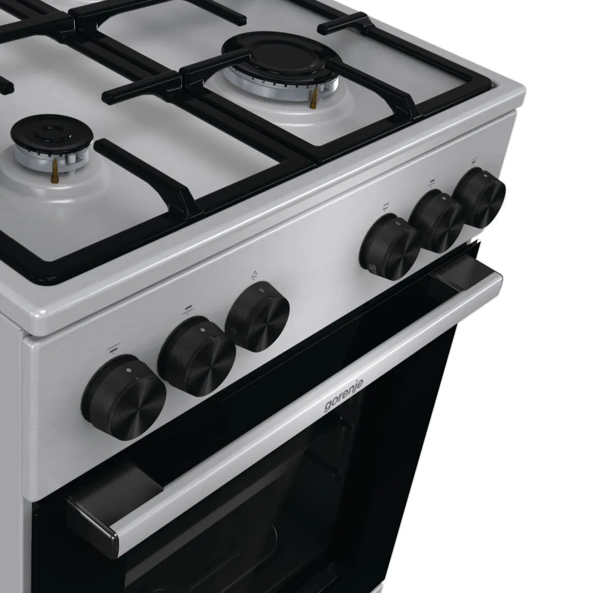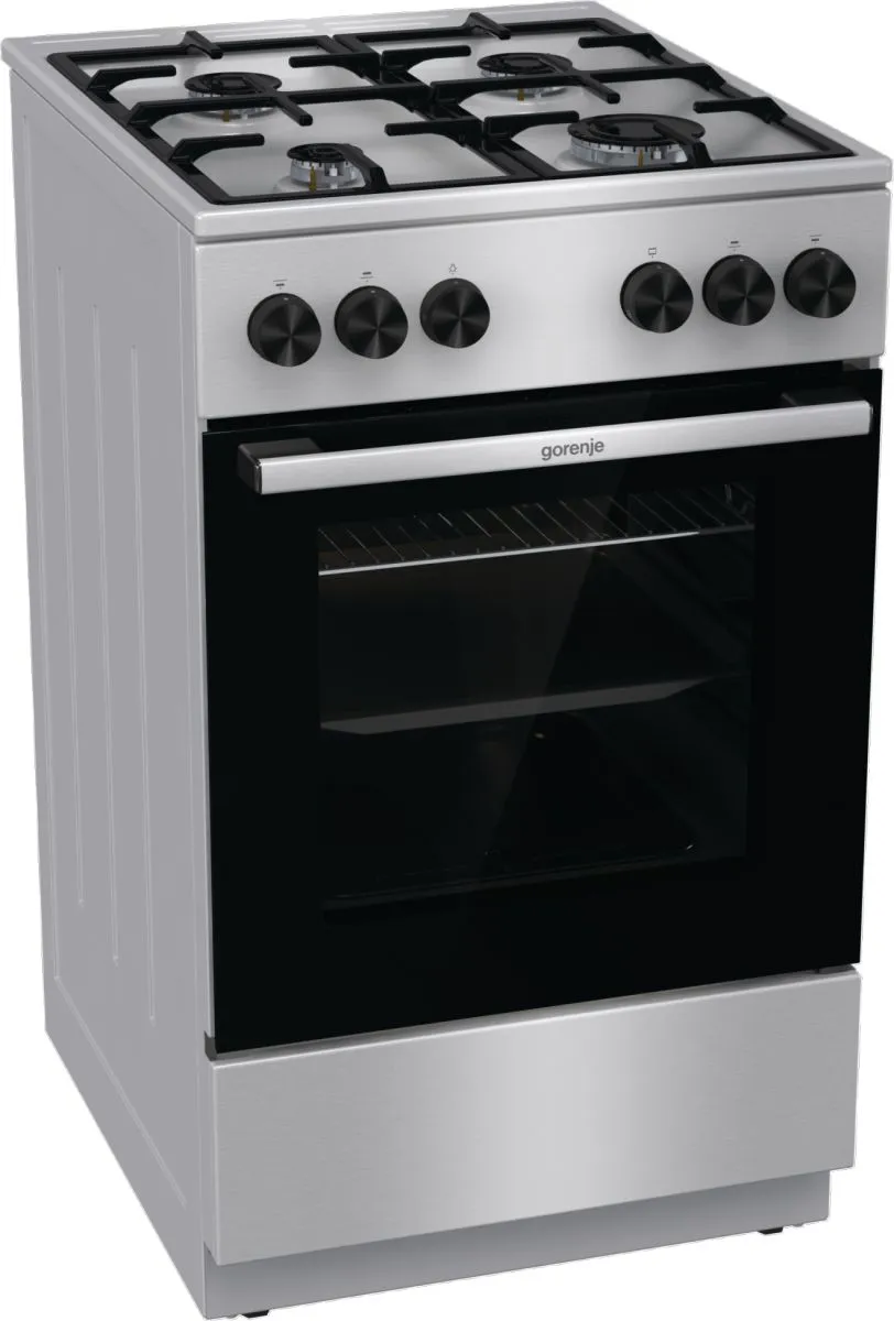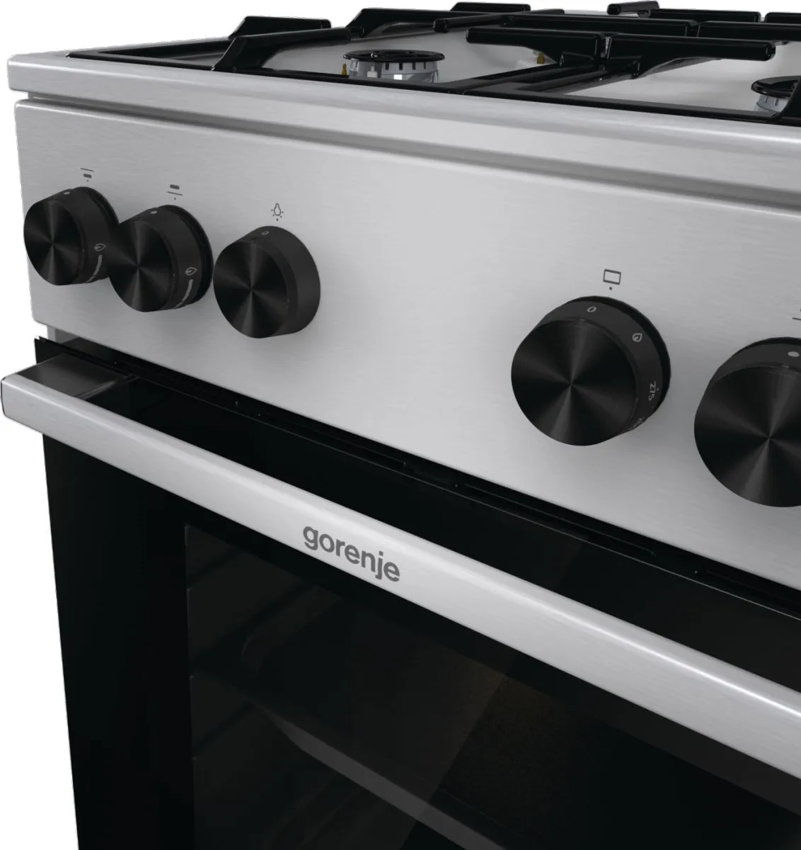 Gorenje GG5A11XF — это газовая плита с корпусом из нержавеющей стали, вместительной духовкой на 70 литров и прочными чугунными решётками. Идеально подойдёт для повседневного использования дома благодаря своей надёжности и простому управлению.