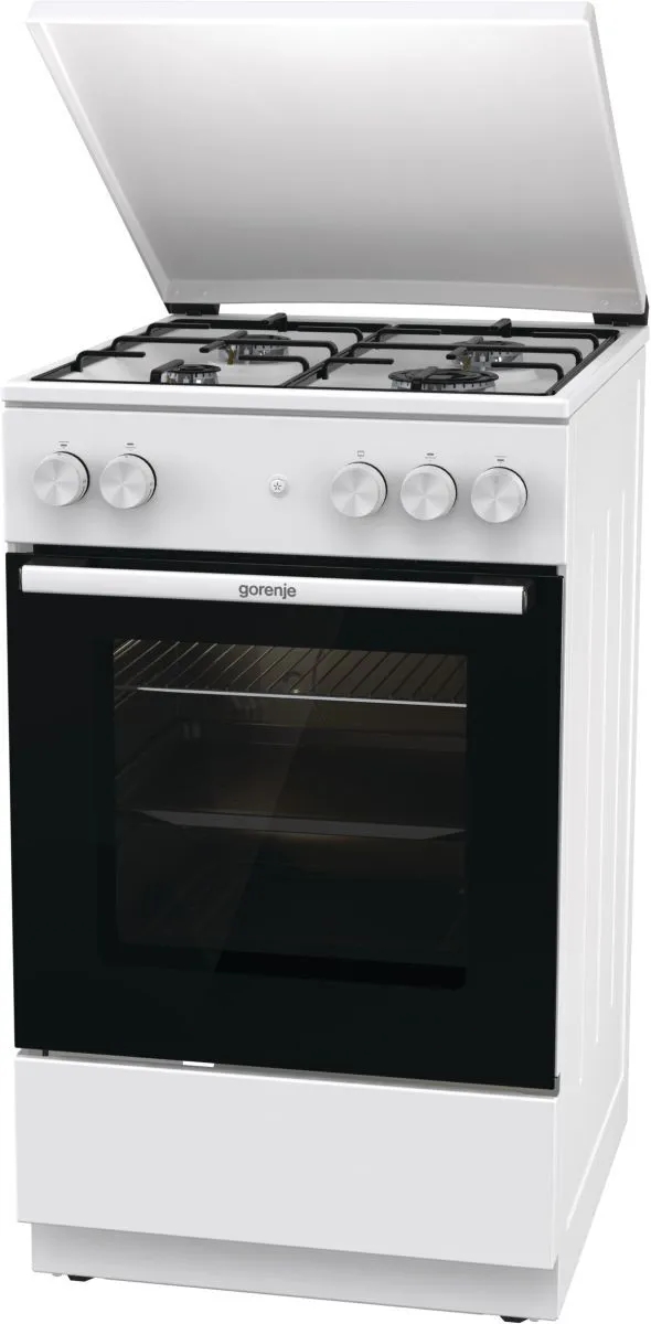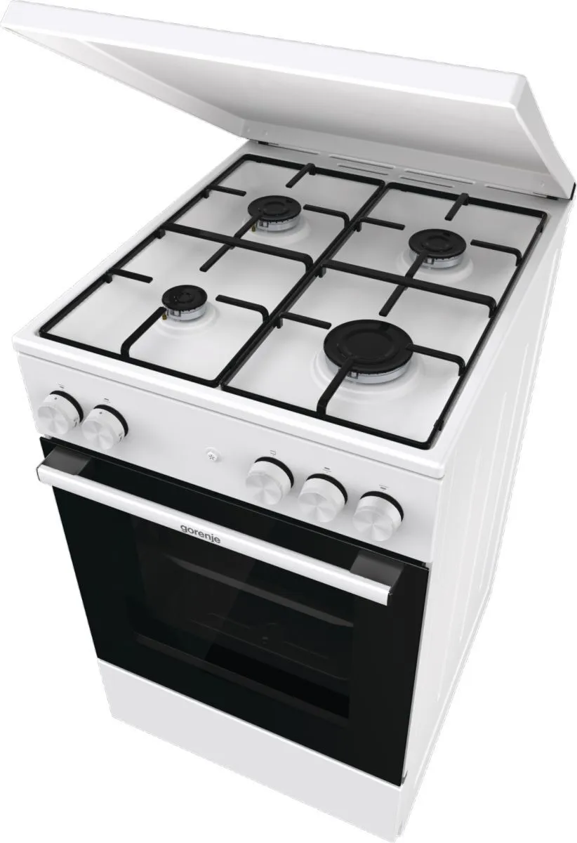 Gorenje GG5A14WJ — это классическая газовая плита с вместительной духовкой на 70 литров, 4 конфорками, эмалированными решётками и металлической крышкой. Модель предлагает всё необходимое для удобной и безопасной ежедневной готовки.