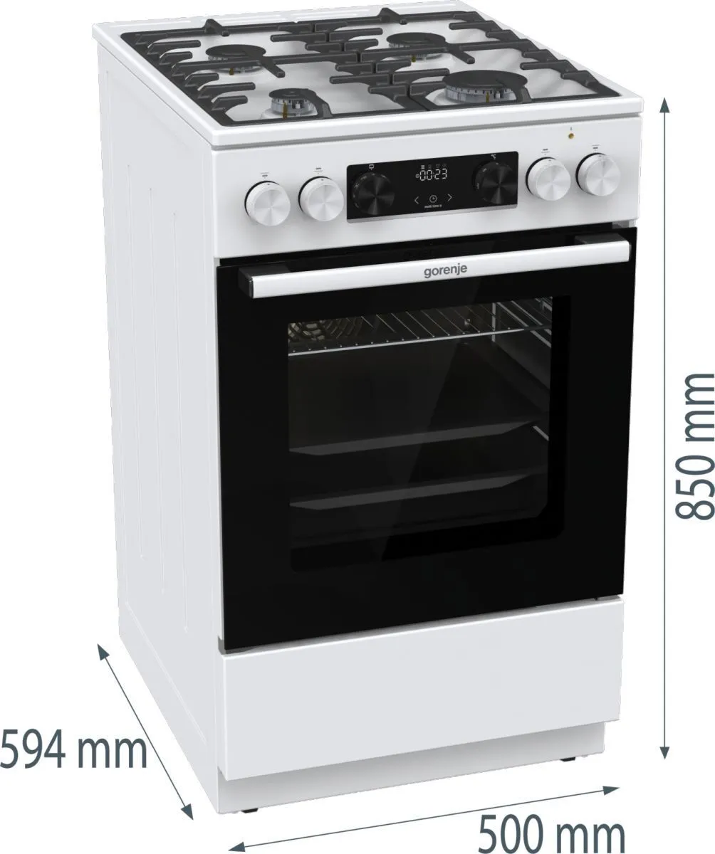 Плита Gorenje комбінована, 70л, 50x60см, дисплей, чавун, білий