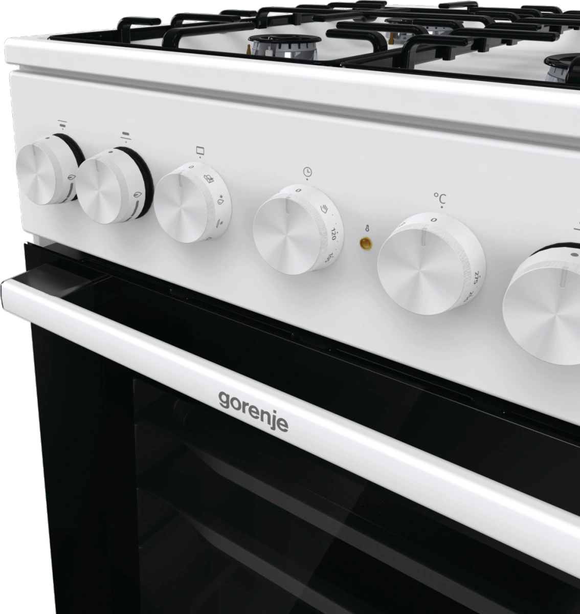 Gorenje GK5B41WH — это надёжная и практичная **комбинированная плита**, сочетающая в себе **газовую варочную панель с эмалированными решётками** и **электрическую духовку объёмом 70 литров**. Благодаря **ширине 50 см**, она идеально подходит для небольших кухонь, а **белый корпус** легко вписывается в любой интерьер.