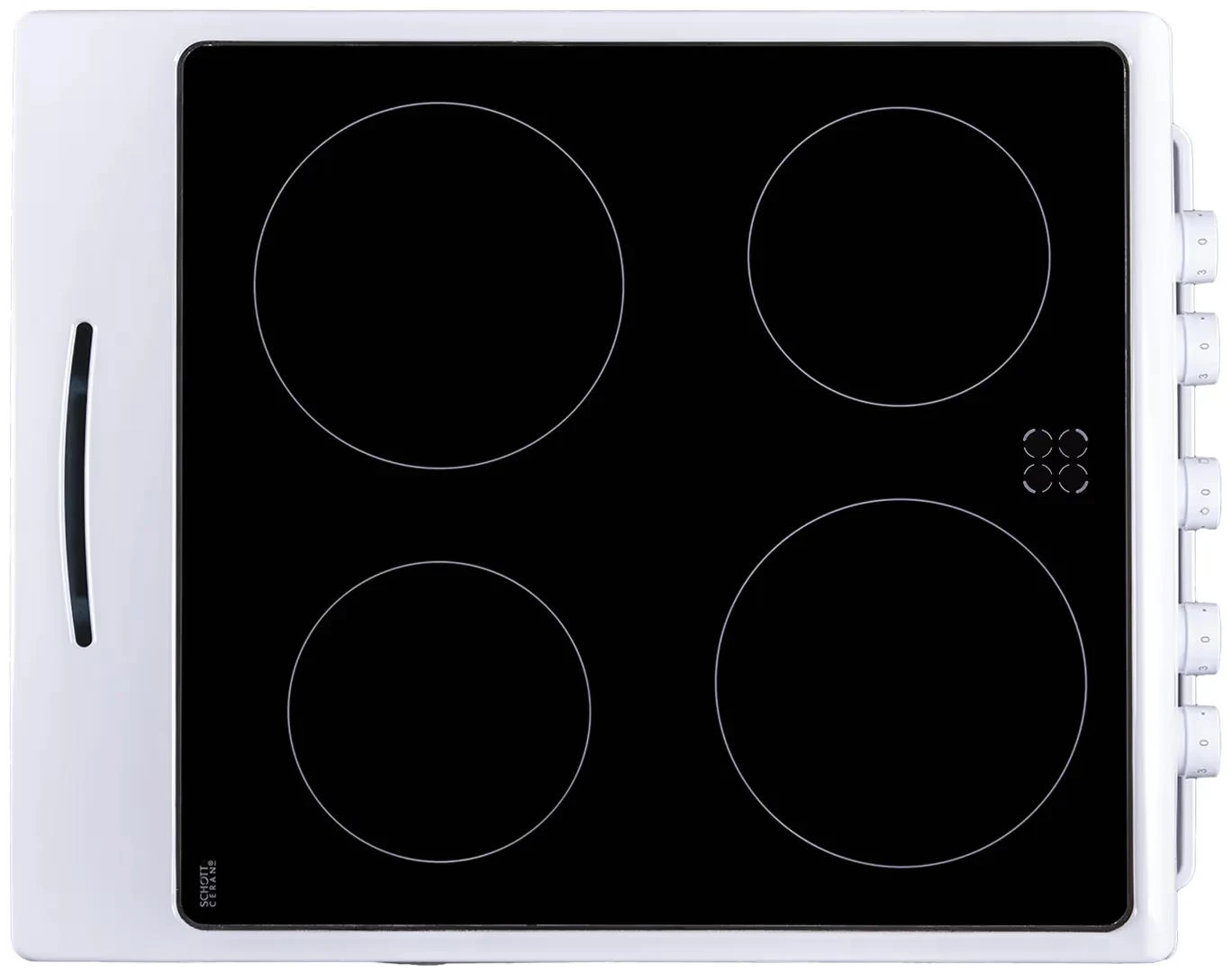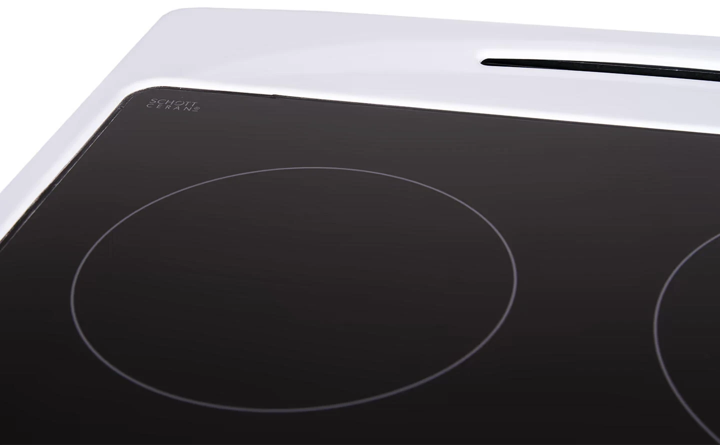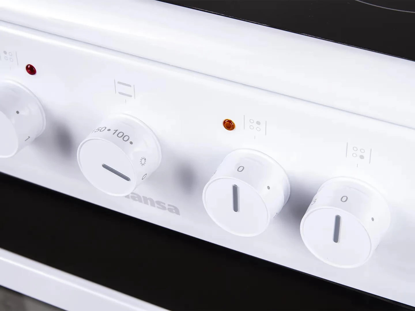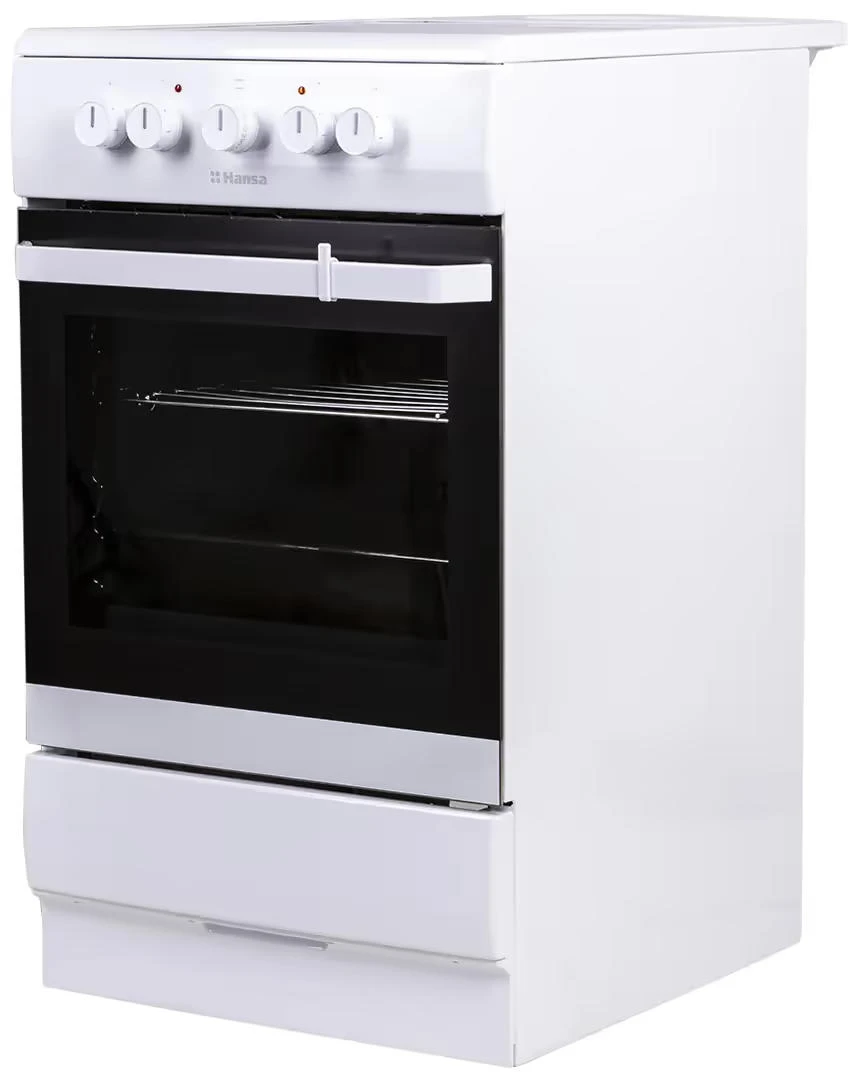 Електрична плита Hansa FCEW53000 з духовкою об’ємом 69 л та трьома функціями приготування. Має емаль легкого очищення, підсвітку, рецепти на дверцятах, металеву кришку та висувний ящик для посуду.
