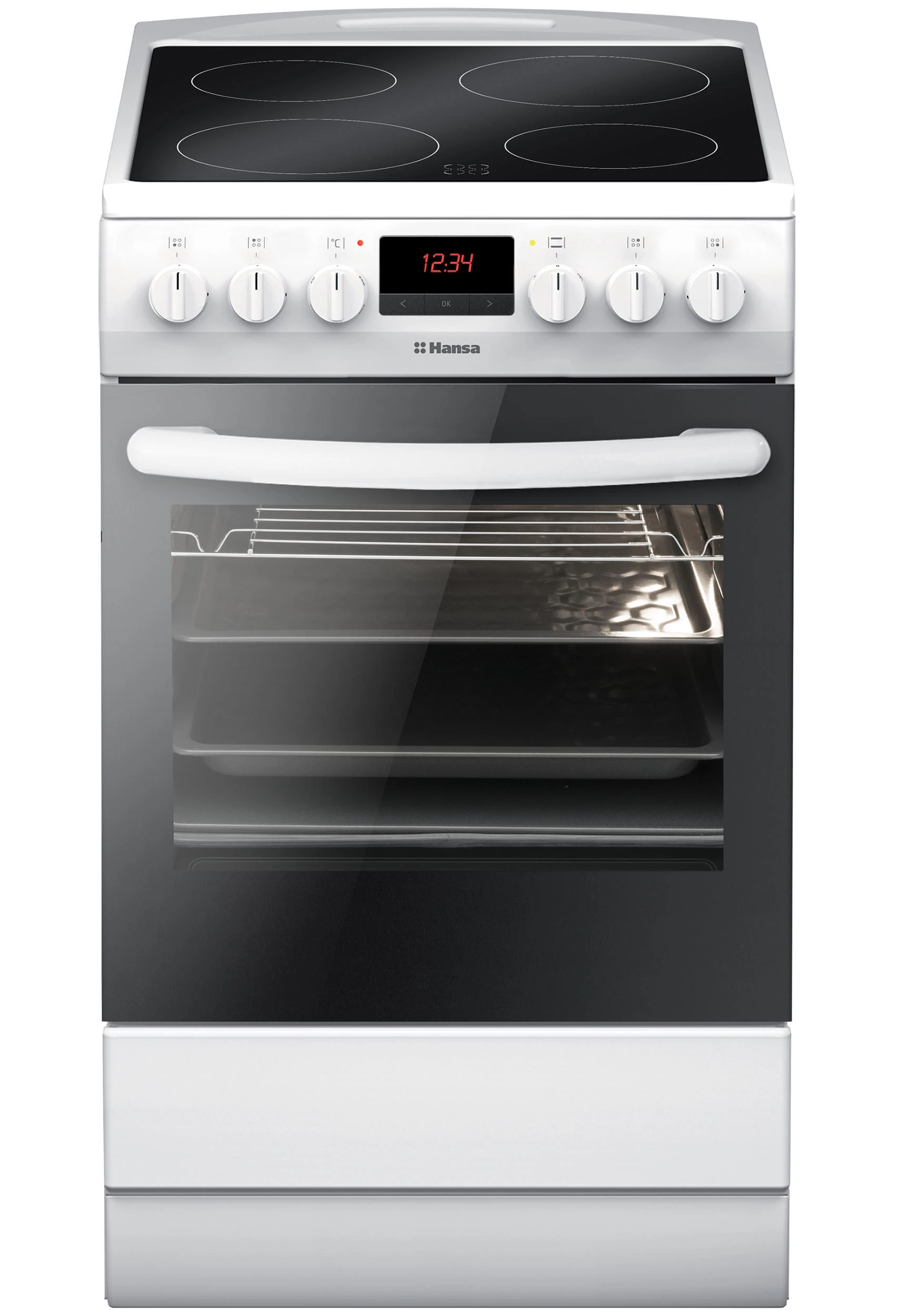 Плита Hansa электрическая стеклокерамическая, 62л, 50x60см, дисплей, конвекция, белый
