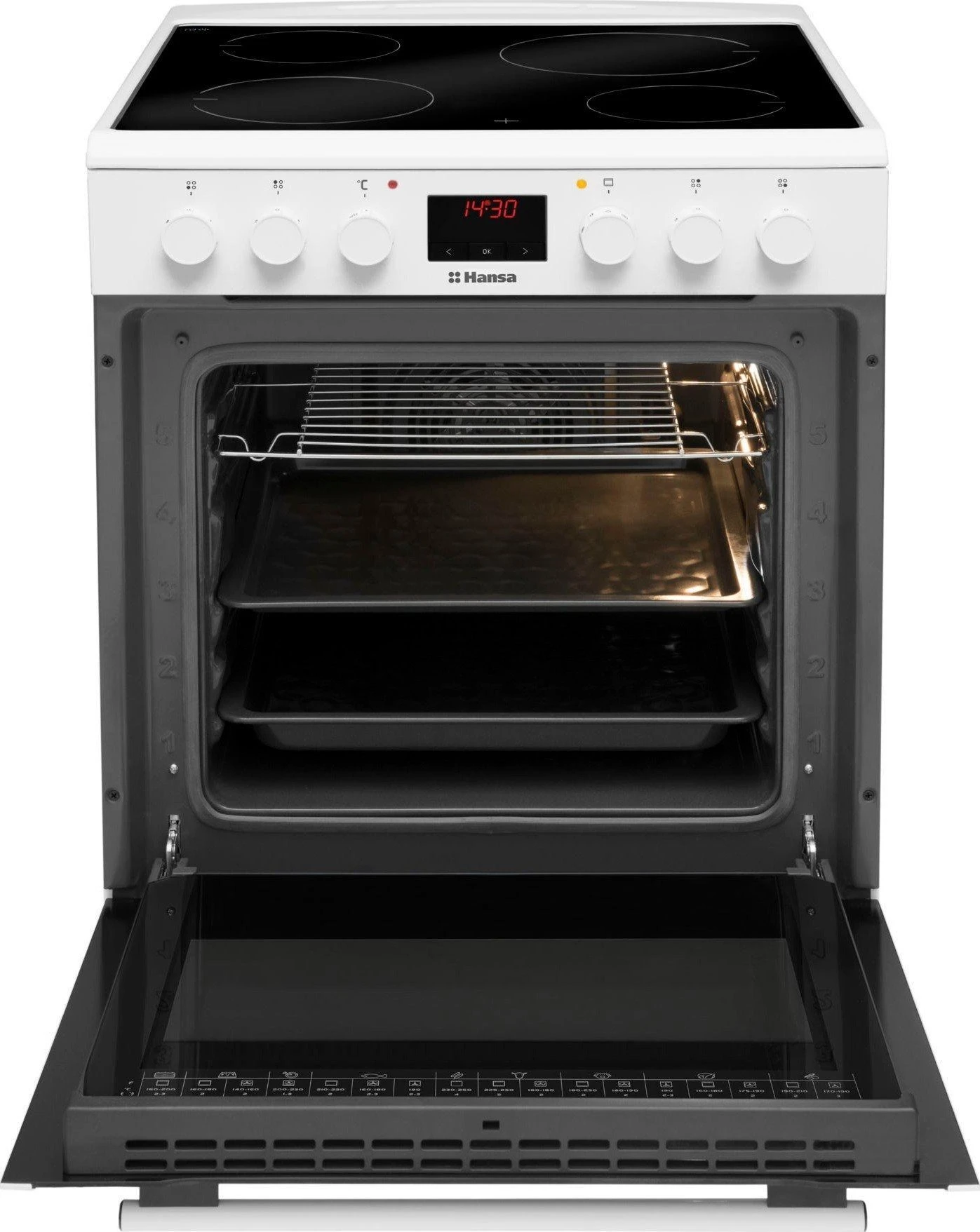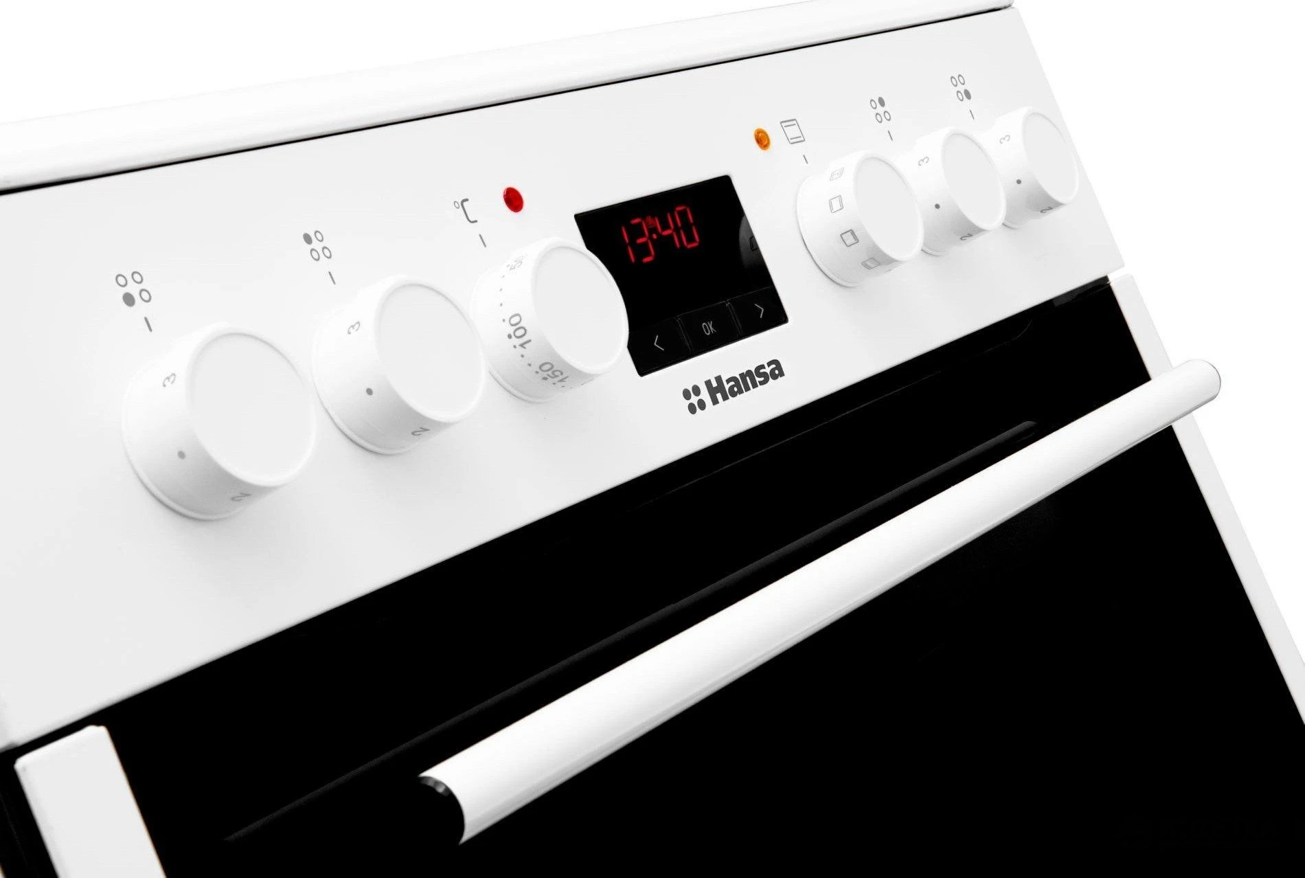 Плита Hansa электрическая стеклокерамическая, 65л, 60x60см, дисплей, конвекция, белый