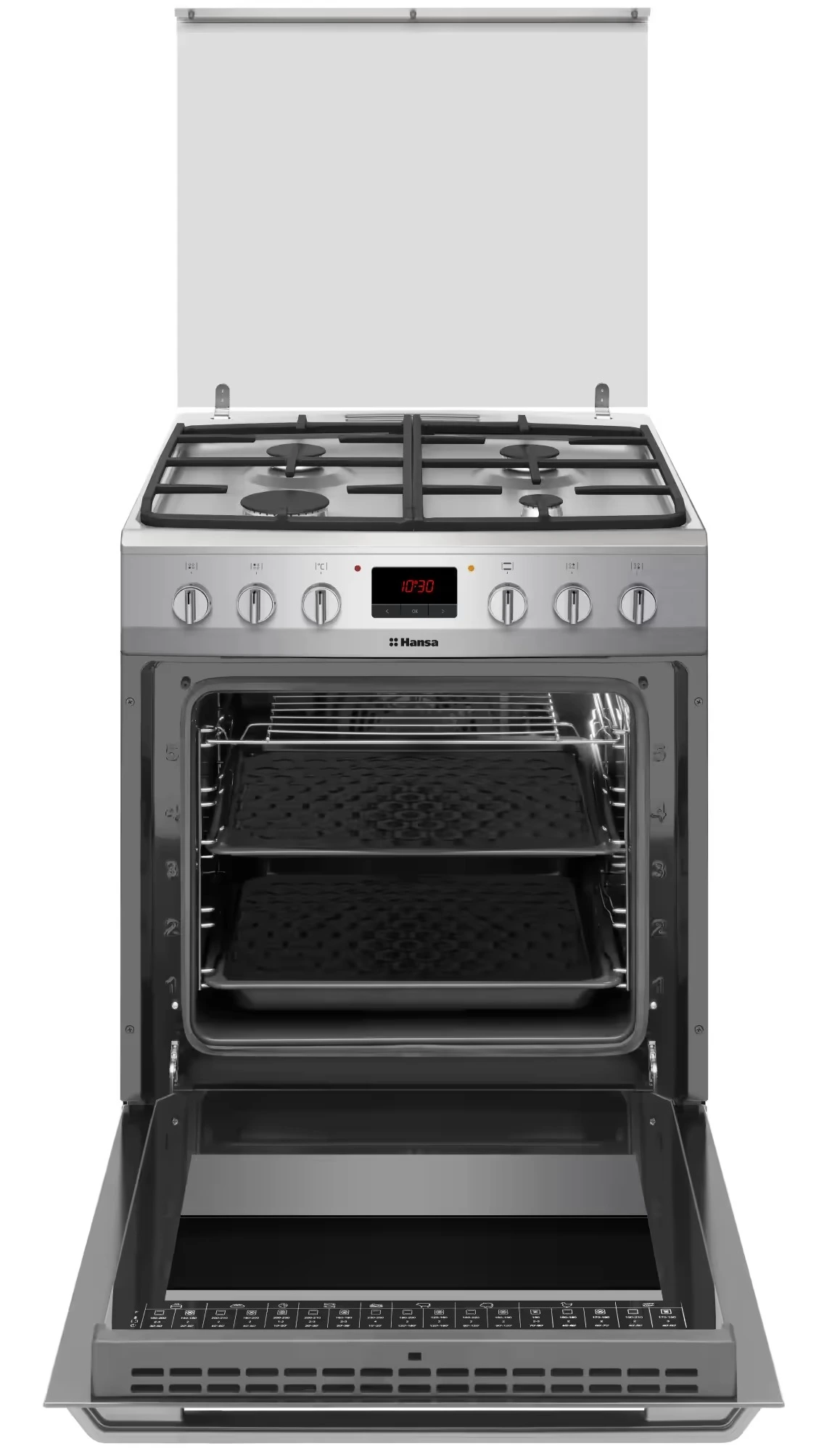 Плита Hansa комбінована, 65л, 60x60см, дисплей, конвекція, чавун, нерж