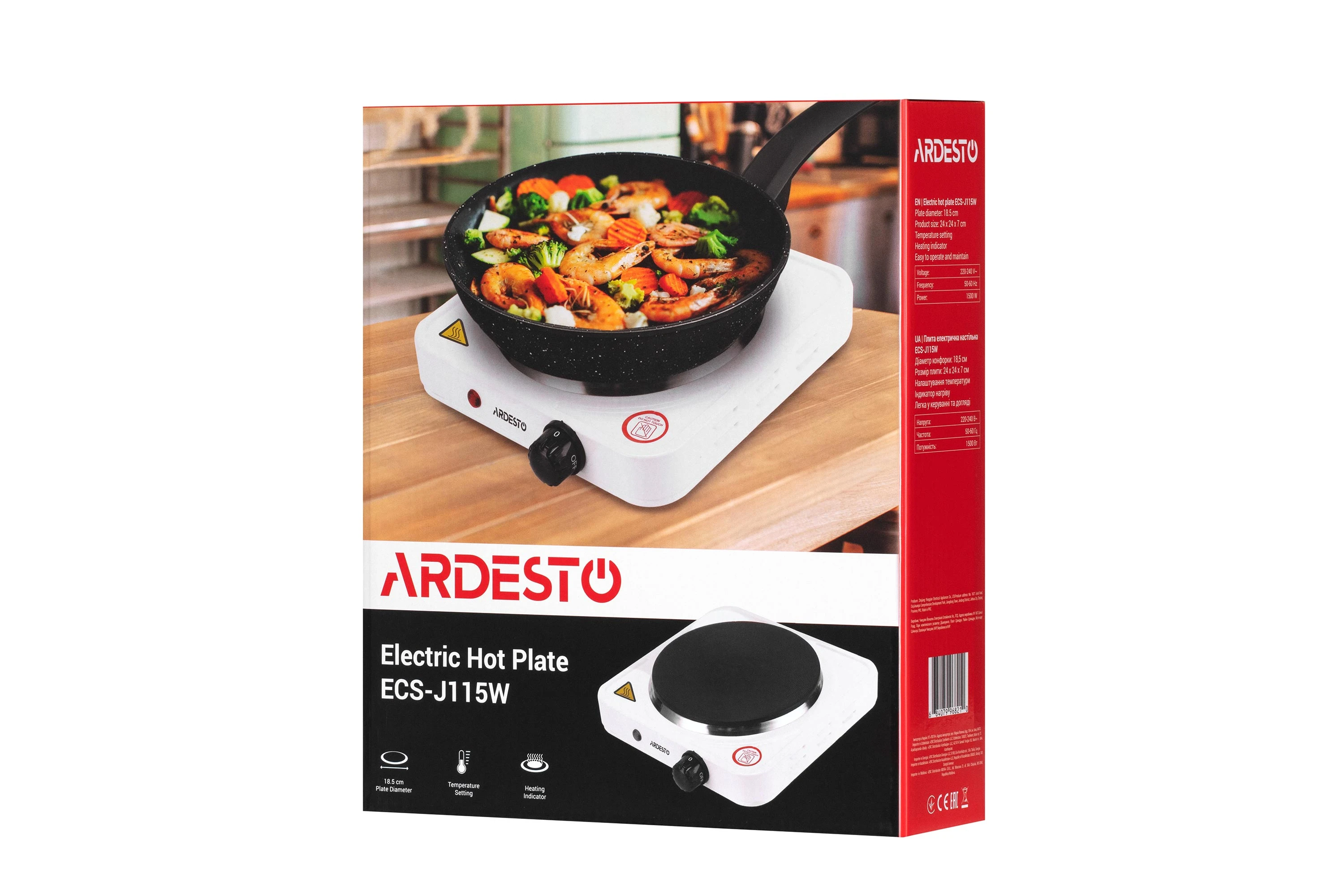Електрична плита ECS-J115W білого кольору з однією конфоркою діаметром 18,5 см й індикатором нагріву. Стане в пригоді для приготування різноманітних страв на дачі, в гуртожитку, в умовах кемпінгу тощо. Є захист від перепадів напруги й регулятор температури має п’ять положень нагріву. Потужність становить 1 500 Вт, напруга – 220 – 240 В. Корпус виготовлено із емальованої сталі. Легка в налаштуванні, користуванні й догляді.