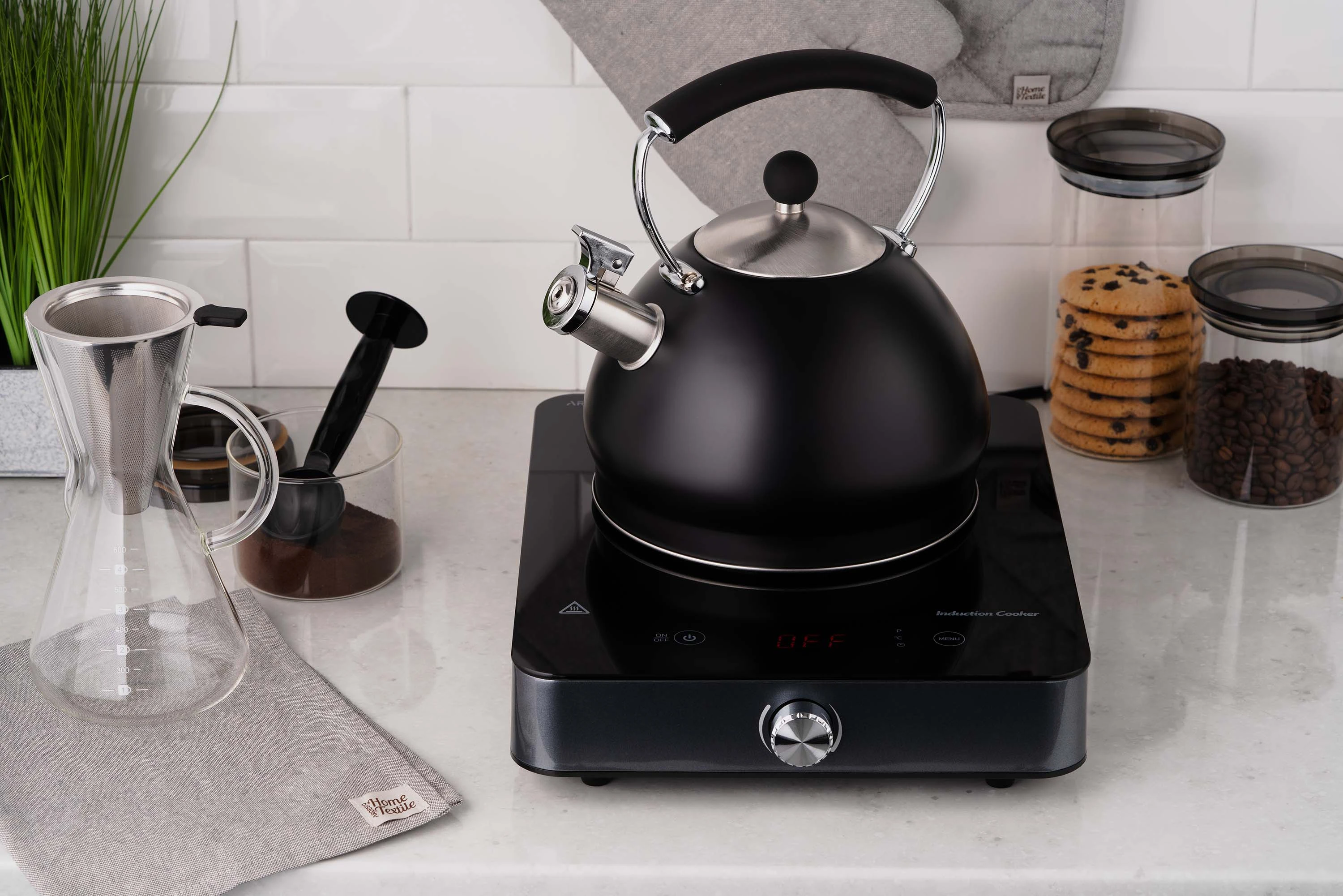 Індукційна електрична варильна поверхня на одну конфорку з потужністю 1800 Вт, комбінованим управлінням, регулюванням температури та потужності, а також таймером приготування та захистом від перегріву і перепадів напруги.