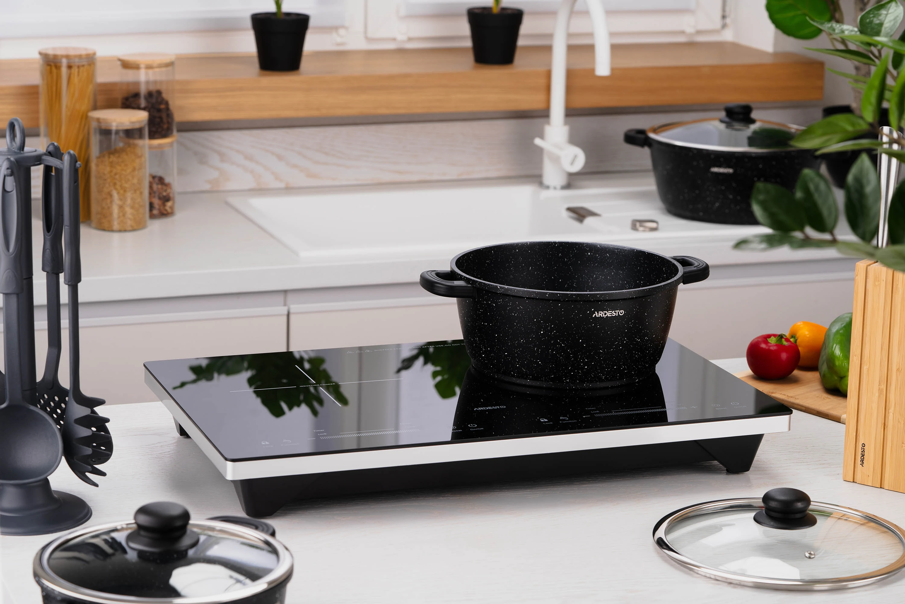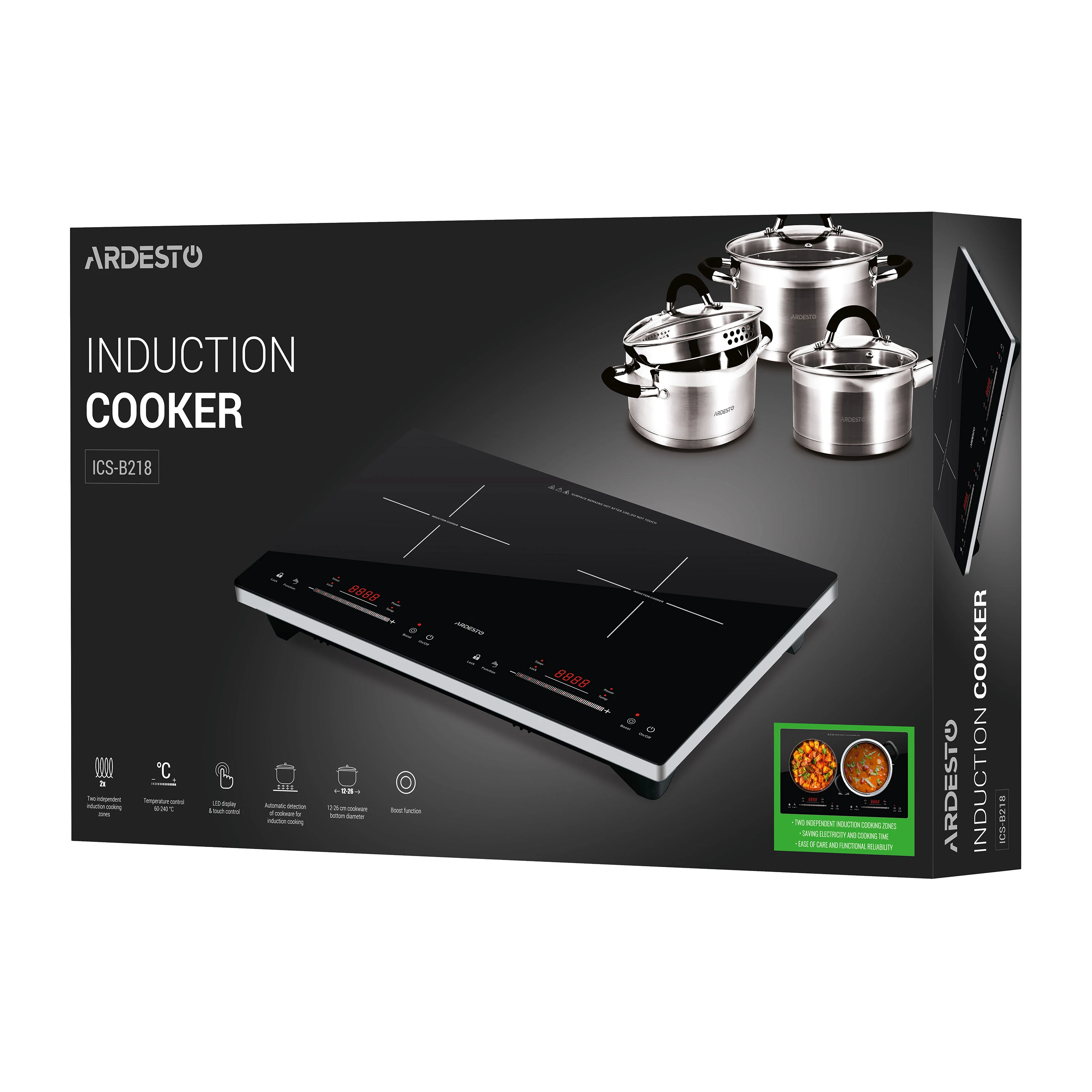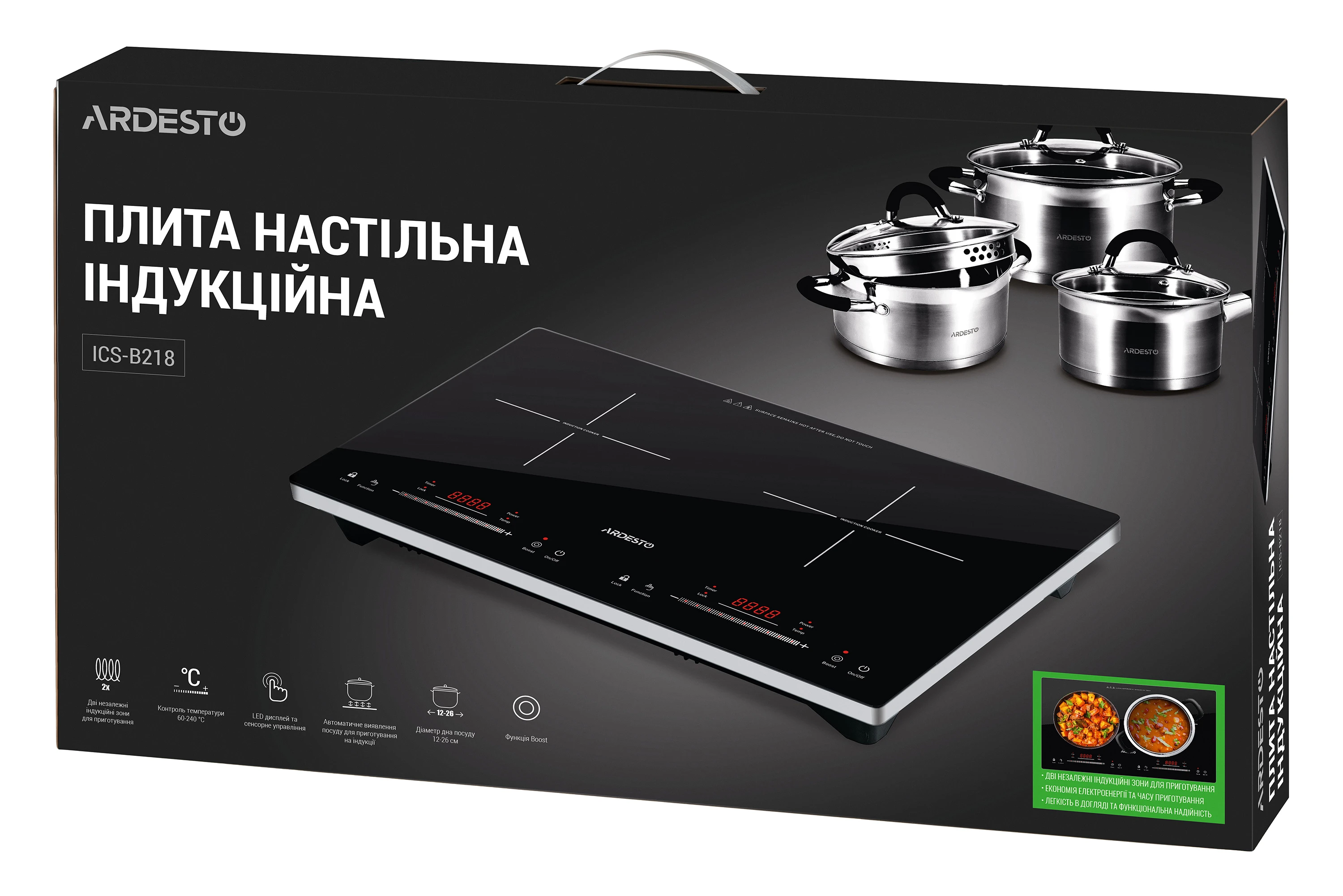 Плитка настільна Ardesto індукційна, конфорок - 2 на 1.3кВт + 1.8кВт горизонт., керування - сенсорне