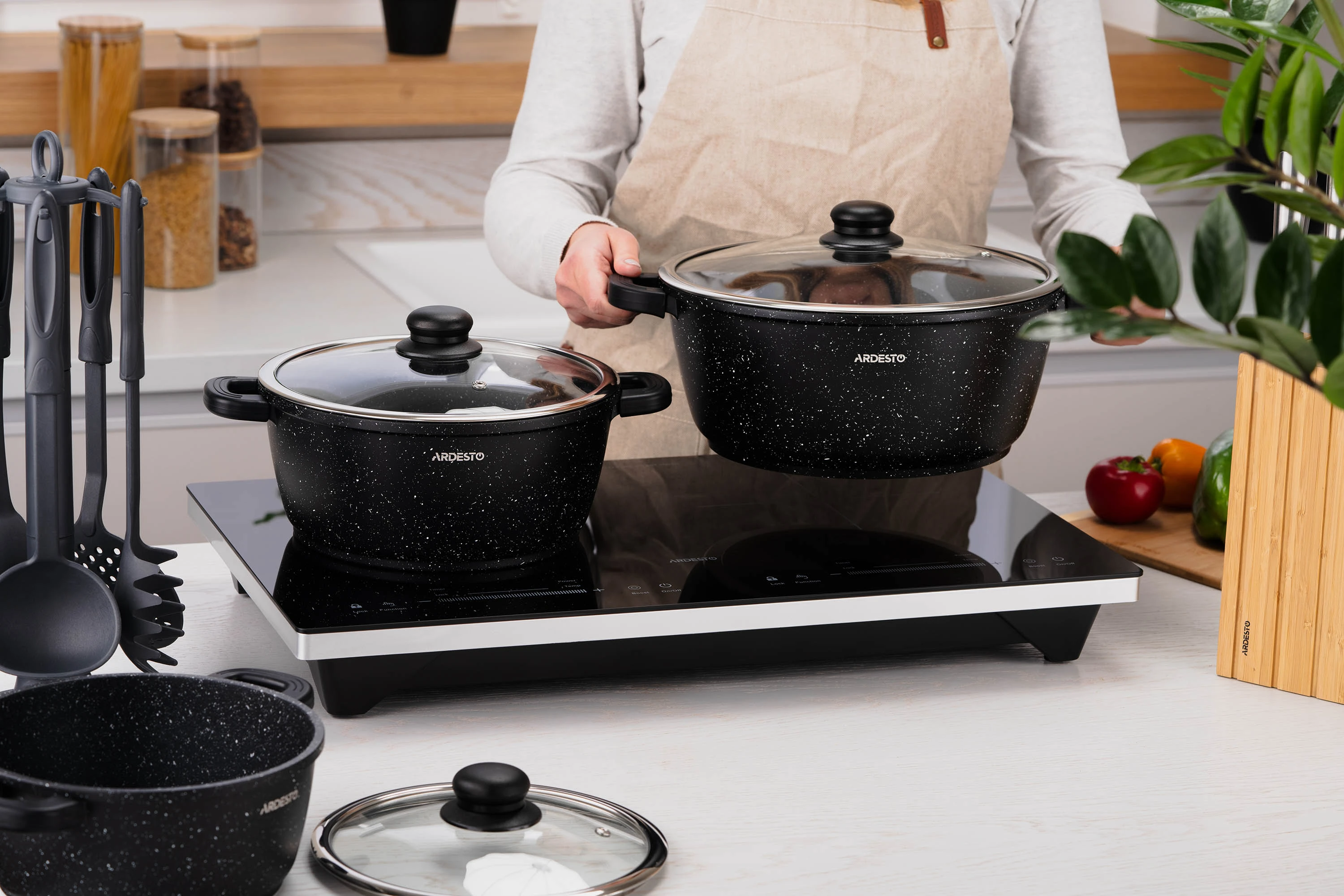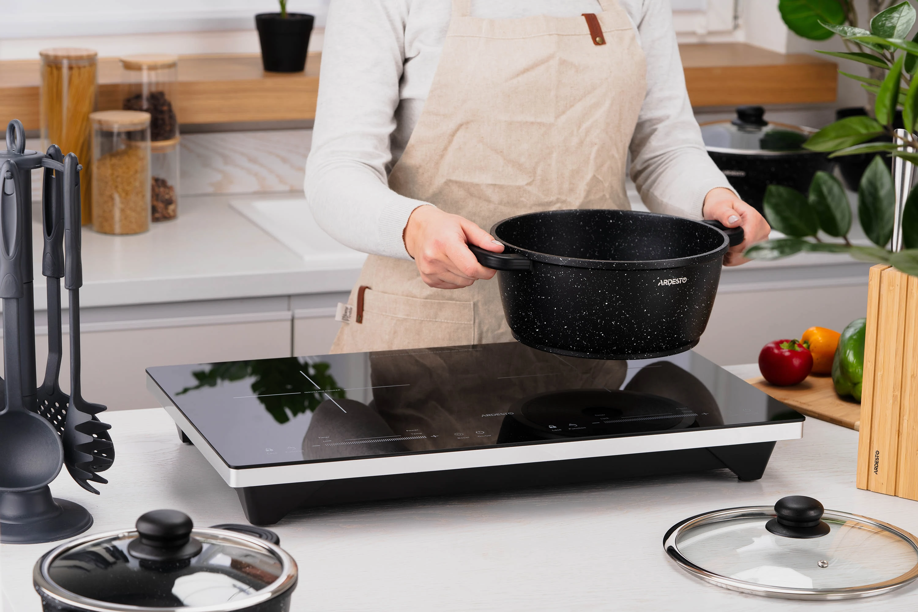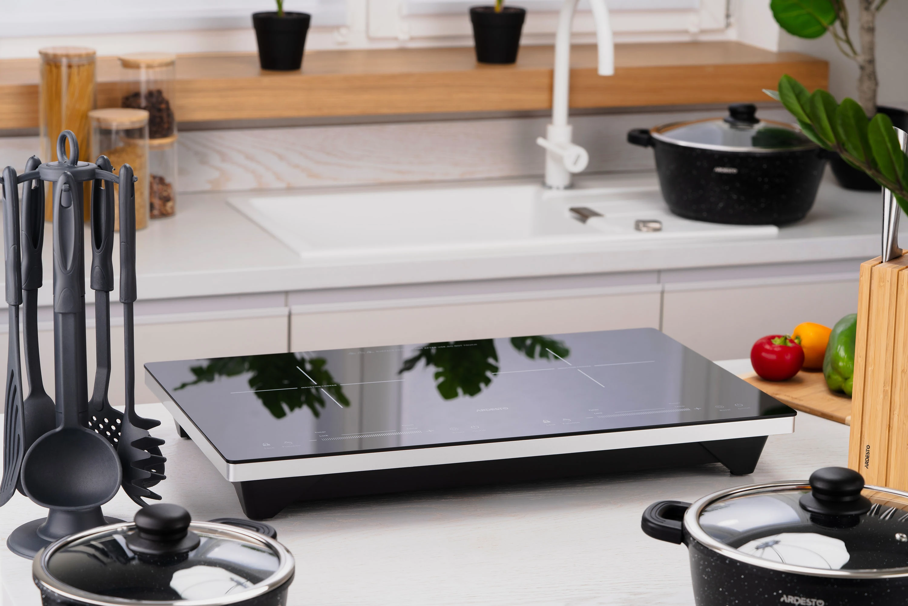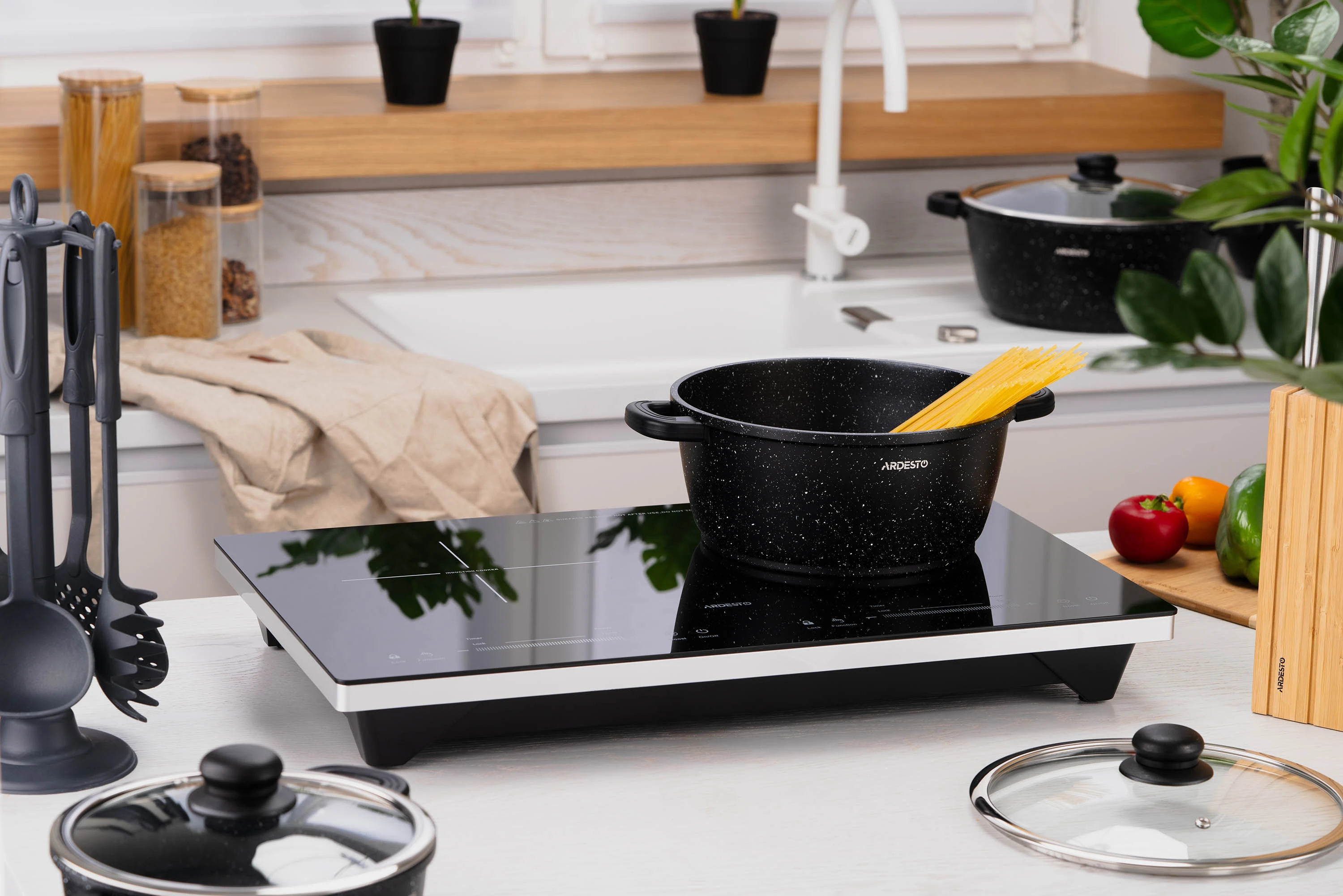 Плитка настільна Ardesto індукційна, конфорок - 2 на 1.3кВт + 1.8кВт горизонт., керування - сенсорне