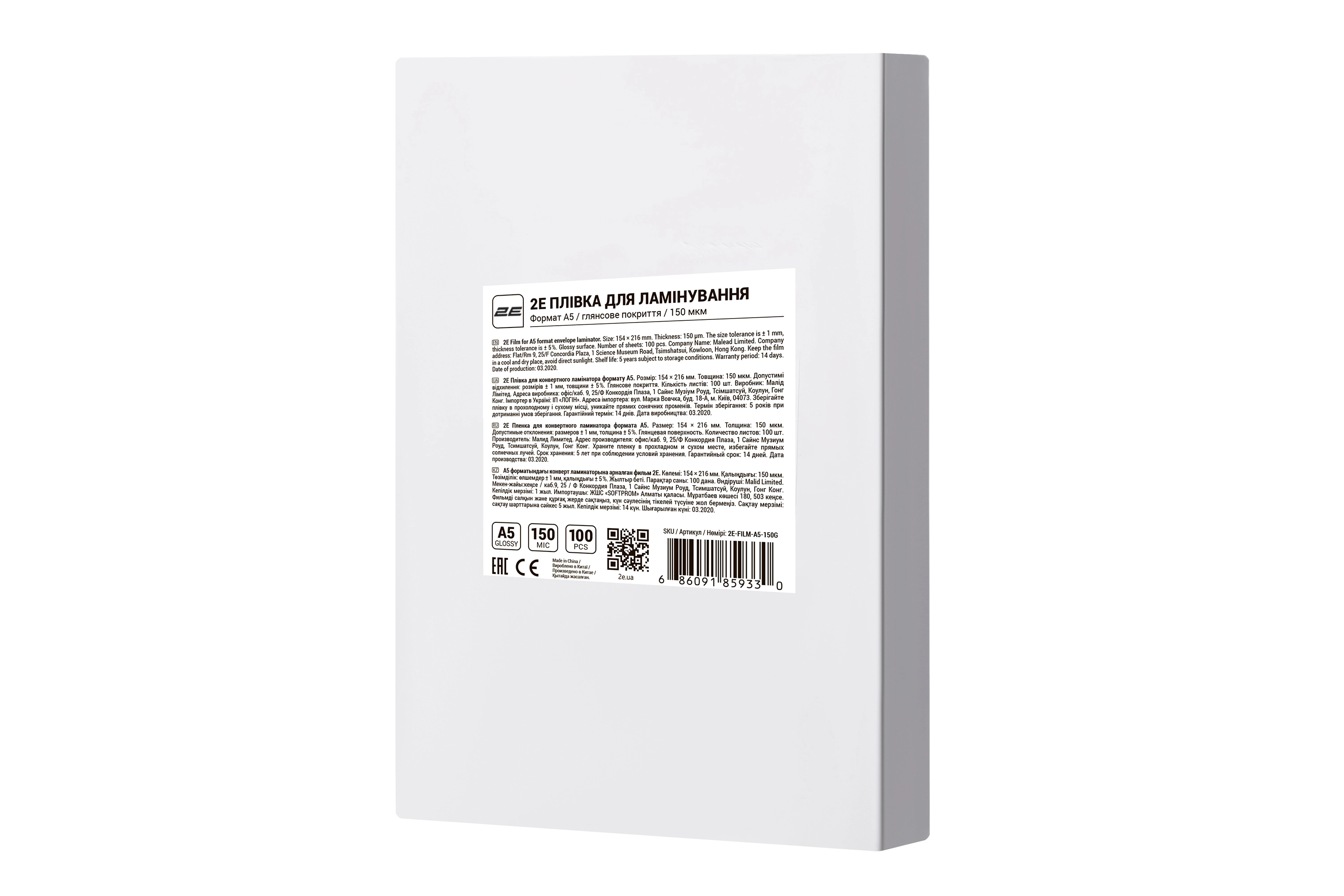 Плівка для ламінування A5 2E, глянсове покриття, 150 мкм, 100шт