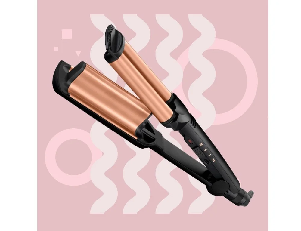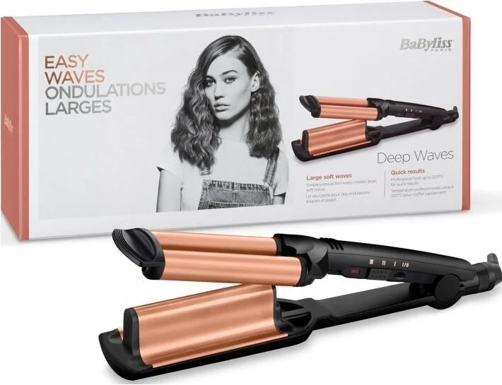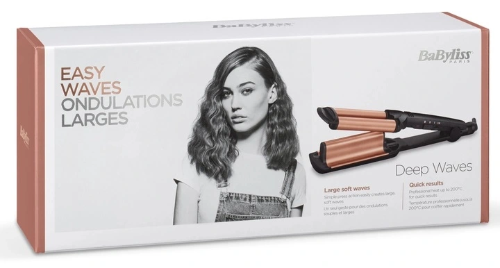 Babyliss, W2447E, Щипці гофре, 85 Вт, чорний. Відповідати трендам бьюті-сфери просто – плойка Babyliss W2447E допоможе у цьому. З її допомогою легко створити накрутку у вигляді великого гофре, що освіжить образ, надавши йому романтичної нотки. Корпус конструкції має дві частини, що змикаються, які стикаються і затискають пасмо. Планомірно пройшовшись розігрітим стайлером вертикально по всій поверхні пасма, ви отримуєте локон відповідного формату. Крім того, що ви матимете бездоганну зачіску, після використання техніки ваше волосся не постраждає.