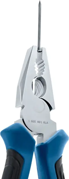 Комбіновані плоскогубці Bosch Professional виготовлені з високоміцної хром-ванадієвої сталі зі спеціально загартованими ріжучими кромками для збільшення терміну служби. Оптимізована конструкція з великим важелем потребує на 30 % менше зусиль під час різання, ніж звичайні плоскогубці, а м'яка гумова ручка з антиковзаючим покриттям гарантує комфортне та безпечне використання, особливо при роботі однією рукою.