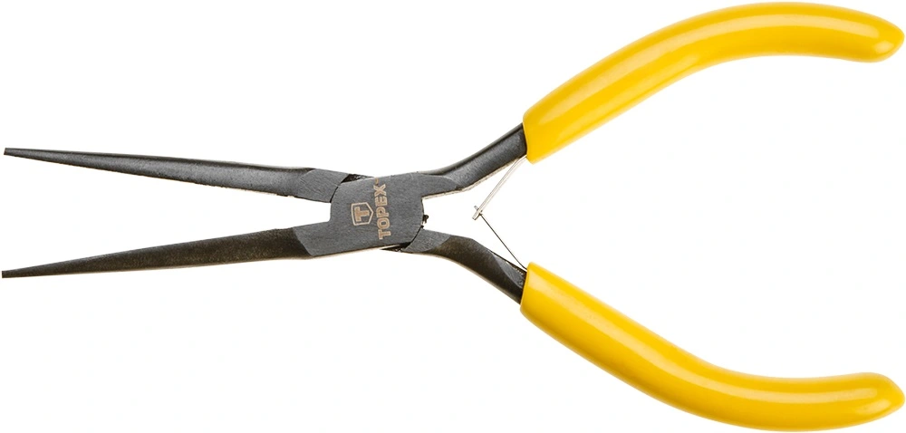 Плоскогубці прецизійні подовжені прямі вузькі TOPEX виготовлені із загартованої вуглецевої сталі. Ергономічні рукоятки, покриті антиковзаючим матеріалом, забезпечують комфорт і безпеку під час роботи. Інструмент повторює анатомічну форму долоні. Бренд TOPEX призначений для домашніх майстрів.