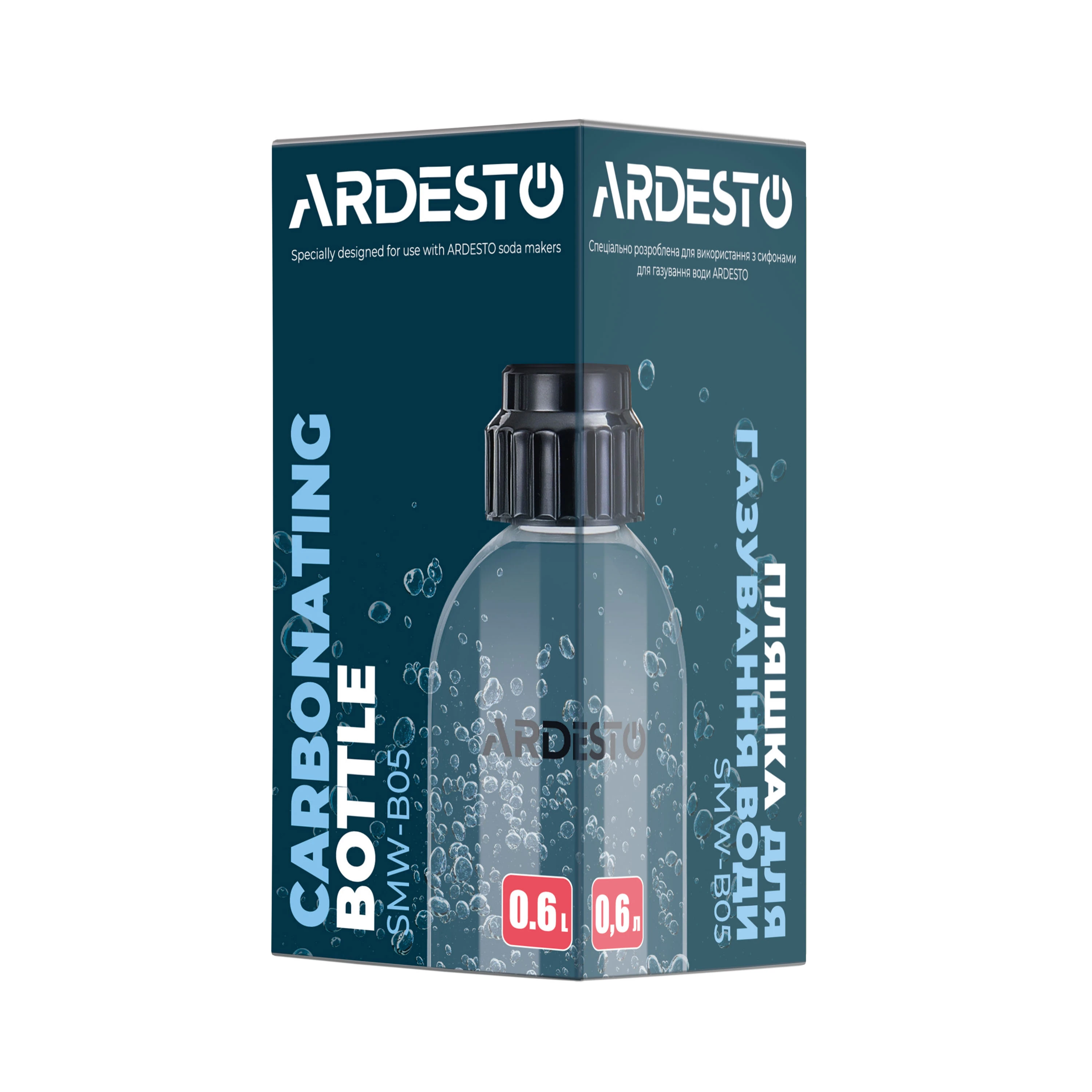 Пляшку для газування води об’ємом 0,5 л спеціально розроблено для використання із сифонами ARDESTO: сумісна з моделями SMW-01B, SMW-02B та SMW-02W. Виріб виготовлено з міцних матеріалів – пластиків PET та ABS, які стійкі до тиску й не містять бісфенол А та інші шкідливі речовини.