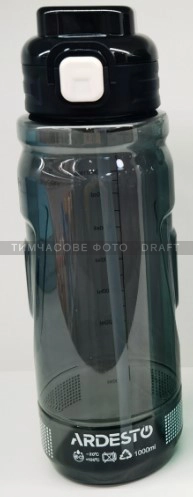 Пляшка для води Ardesto Sport 1000мл, пластик, чорний