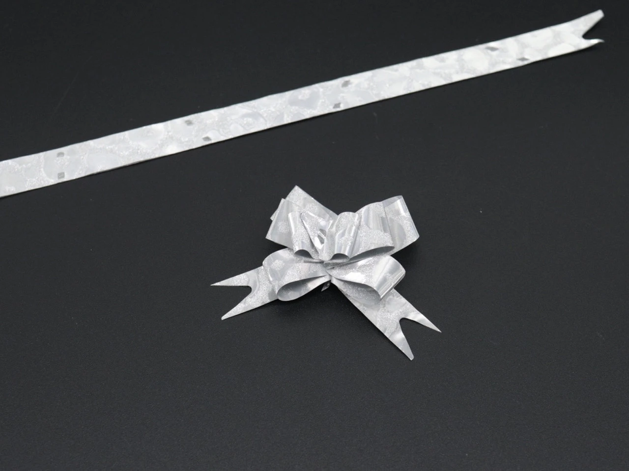Этот аксессуар подходит для упаковки подарков любого размера, оформления букетов, коробок или декорирования праздничных композиций. Затяжной механизм обеспечивает удобство в использовании: просто потяните за ленту, и бант приобретет объемную форму.