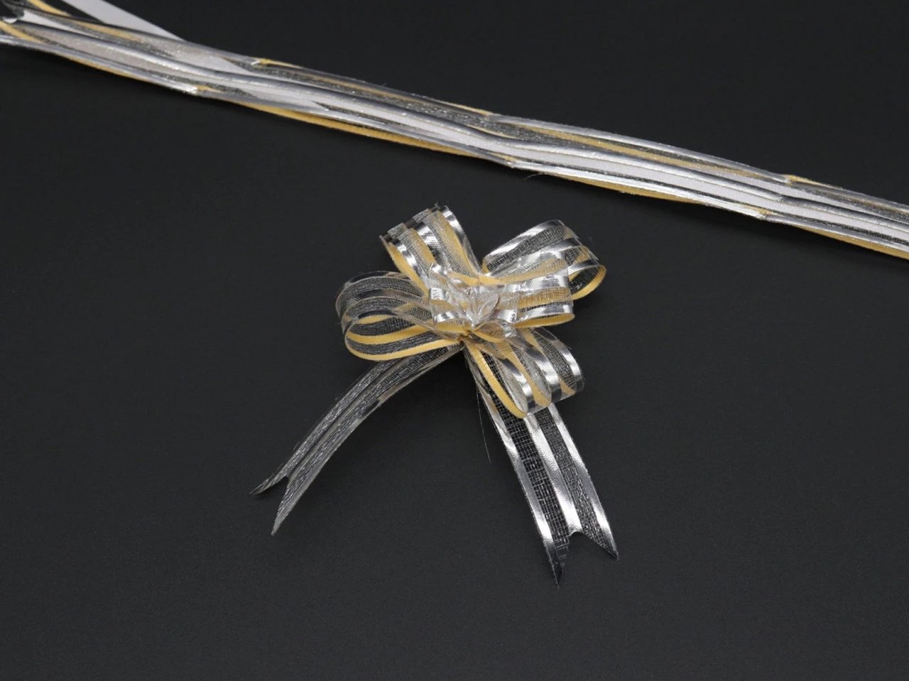 Этот аксессуар подходит для упаковки подарков любого размера, оформления букетов, коробок или декорирования праздничных композиций. Затяжной механизм обеспечивает удобство в использовании: просто потяните за ленту, и бант приобретет объемную форму.