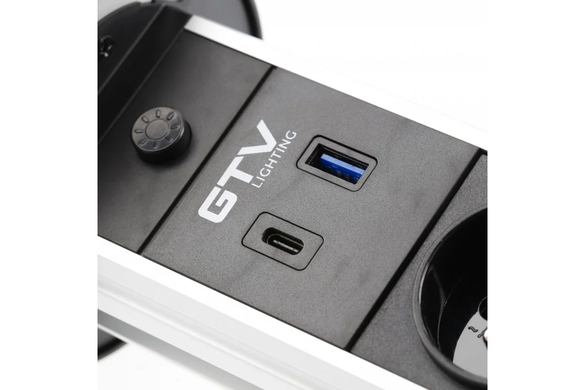 Удлинитель GTV CAMINO AE-BPW2sCAM-10 SCHUKO 2 розетки USB A+C QC WC 10W Белый
