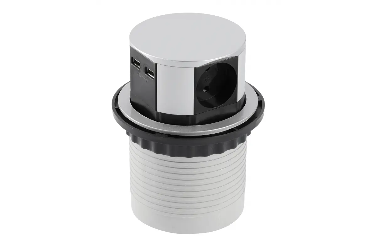 Удлинитель GTV COMFORT 100мм 3 розетки Schuko, 2xUSB 2,4A, кабель 1,5м Алюминий
