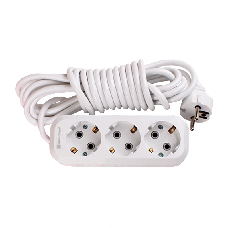 Удлинитель с заземлением, 3 розетки, 5 м, белый