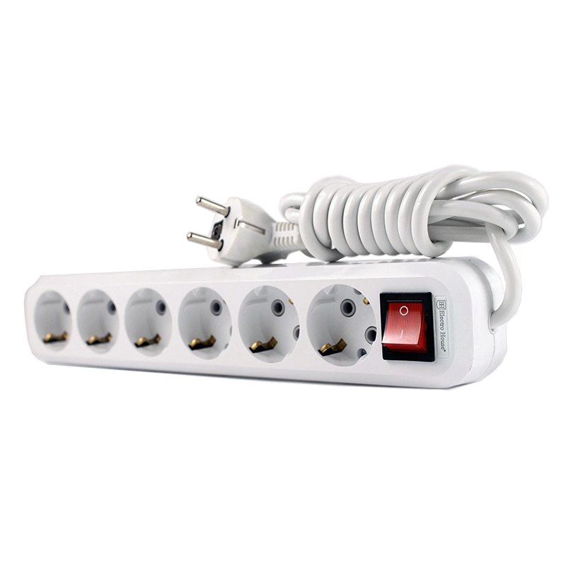 Удлинитель с заземлением с кнопкой 6 гнезд, 3 м, белый EH-2251 от ElectroSpace - это идеальное решение для удлинения электропитания в любом помещении. С его помощью вы сможете одновременно подключить несколько электроприборов, сохраняя при этом безопасность благодаря заземлению. Удлинитель оснащен удобным выключателем с индикатором, что позволяет выключать все приборы одним нажатием кнопки, экономя энергию и увеличивая удобство в использовании.