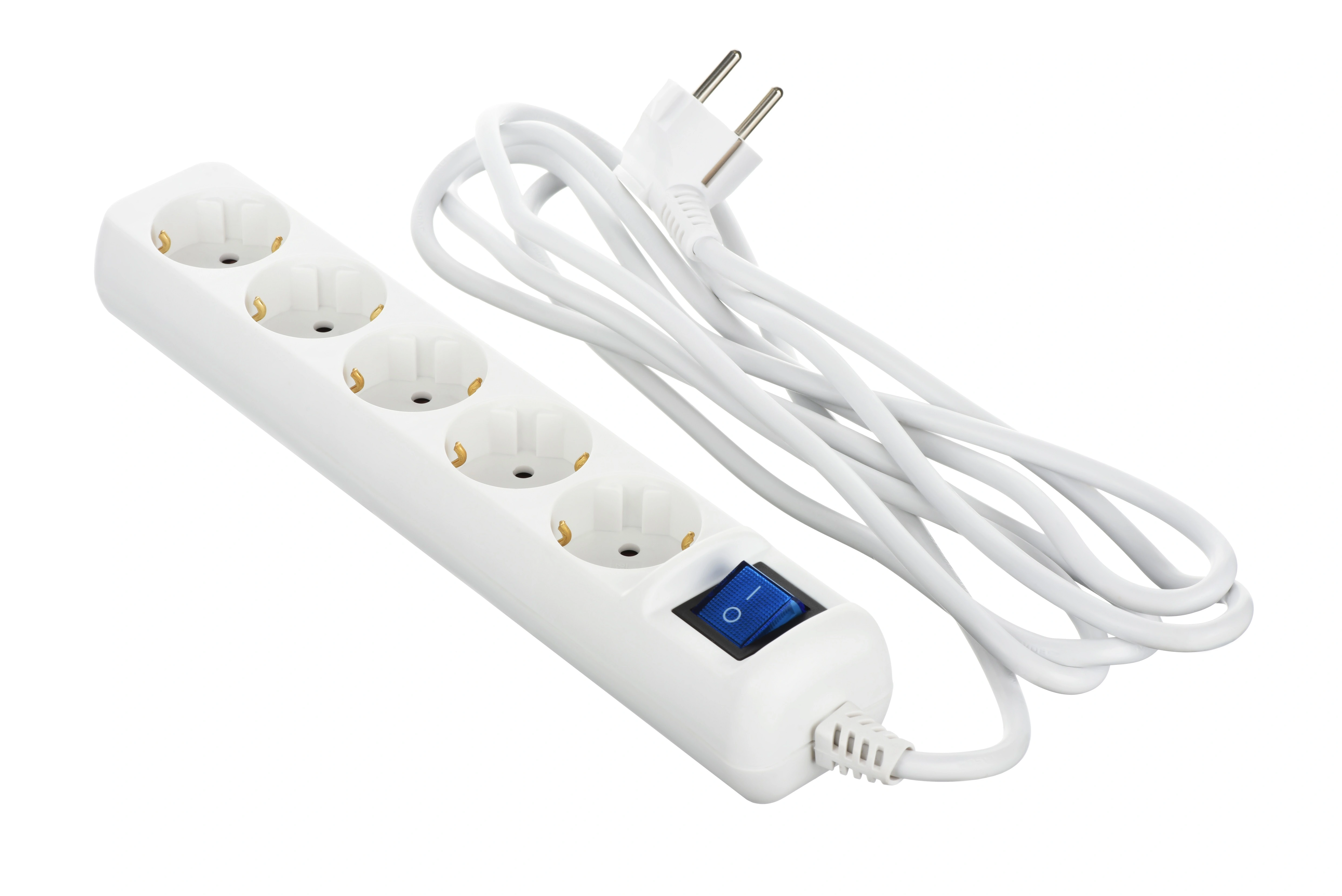 Подовжувач мережевий 2E 5хТип F, 3х1.5мм кв, 16A, 3м, білий