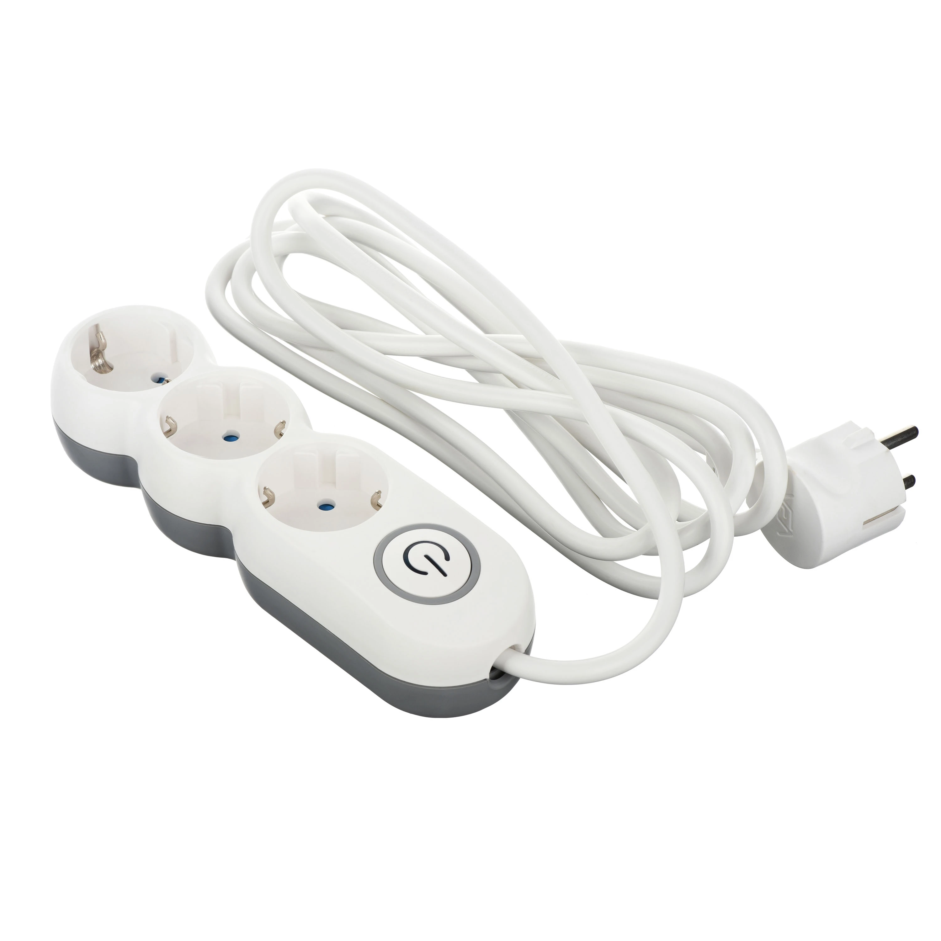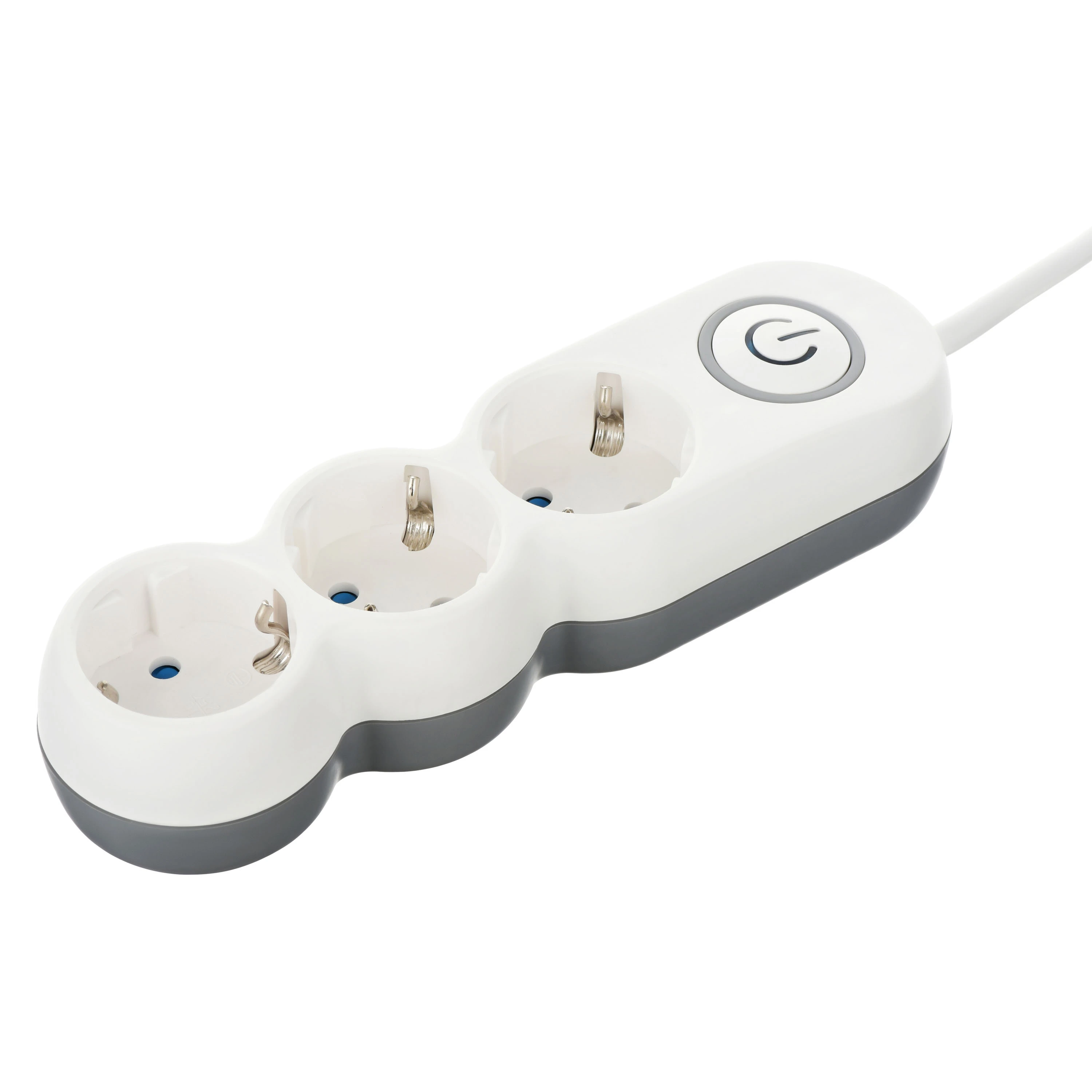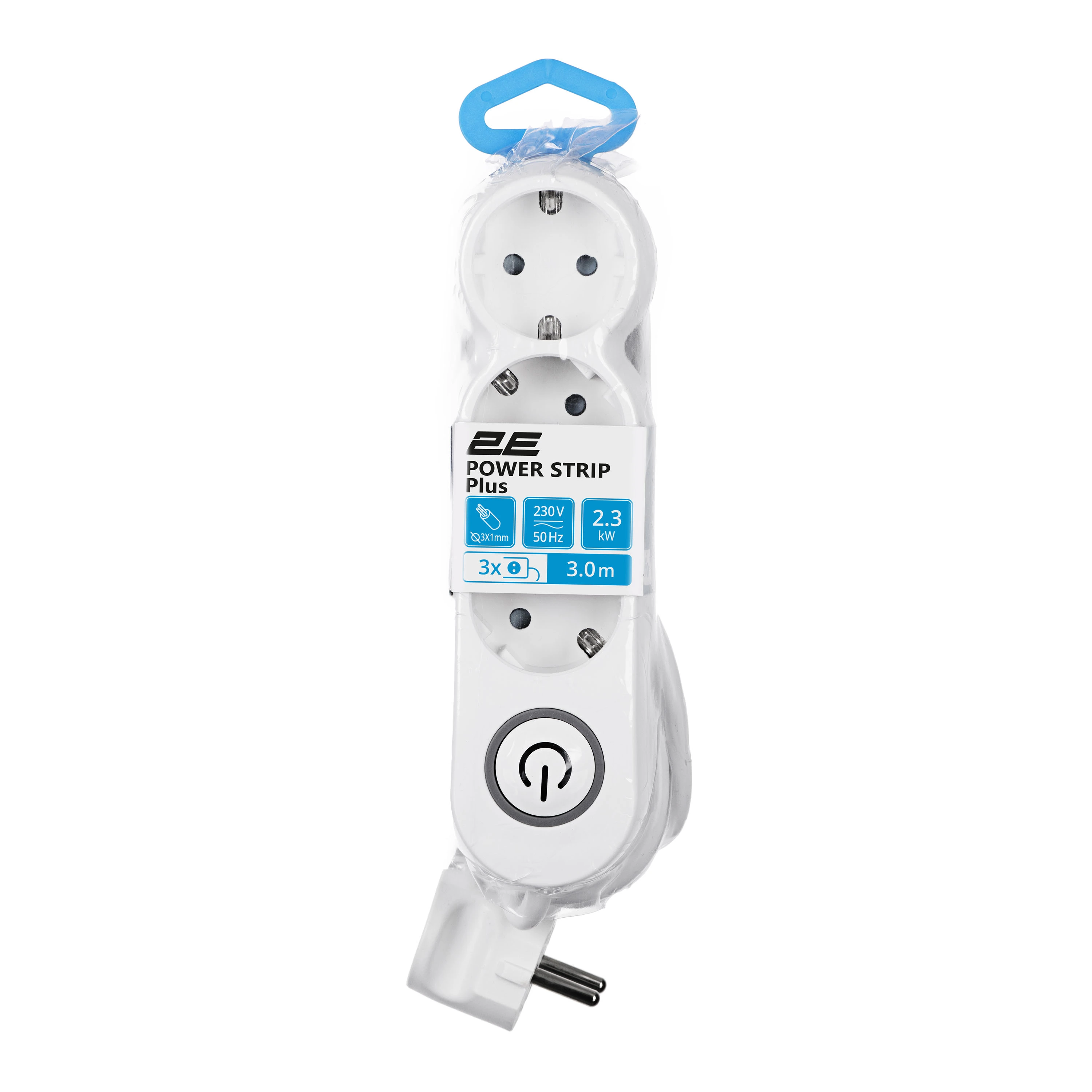 Подовжувач мережевий 2E Plus 3хТип F, 3х1мм кв, 10A, 3м, біло-сірий
