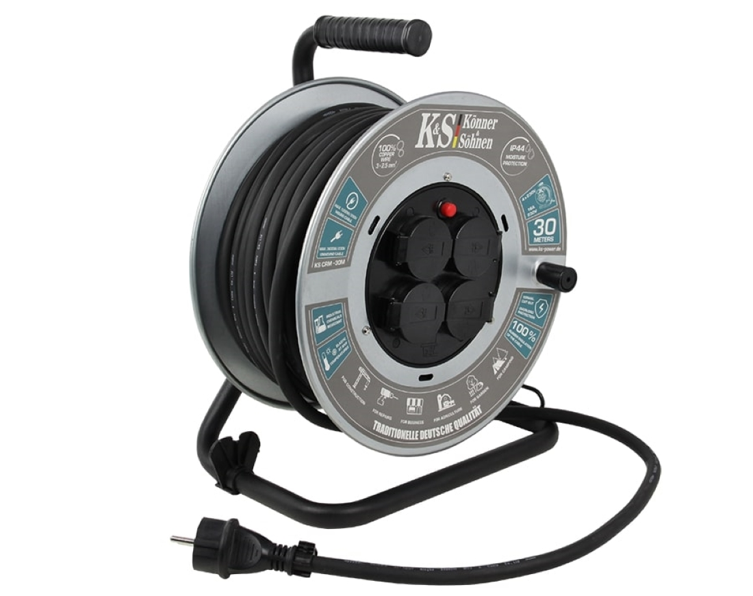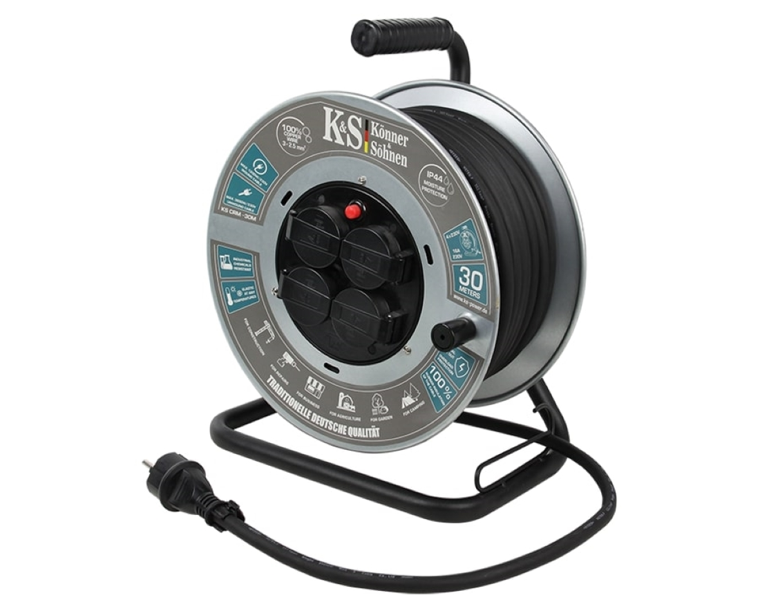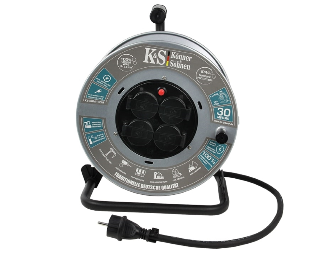 Подовжувач мережевий Konner&Sohnen KS CRM-30M, 3600Вт, 4х16А/230В, 3х2.5мм, IP44, 7.8 кг, на котушці