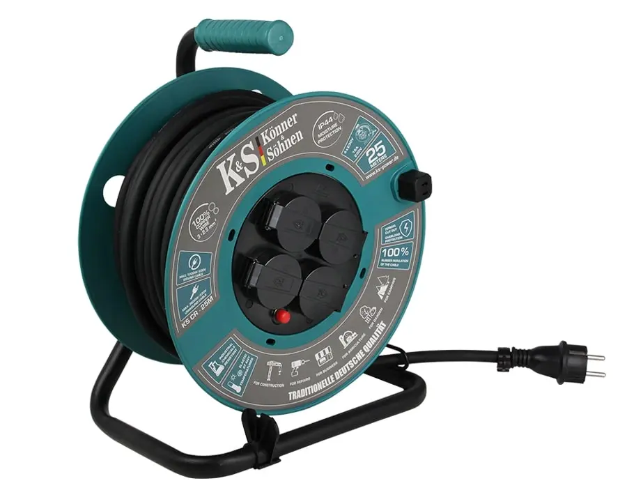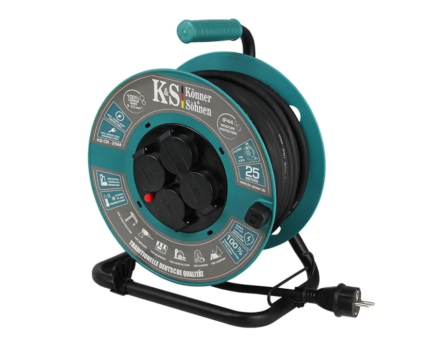 Подовжувач мережевий Konner&Sohnen KSCR-25M KS 2E 4хТип F, 3х2.5мм, 16A, на котушці, 25м, зелений